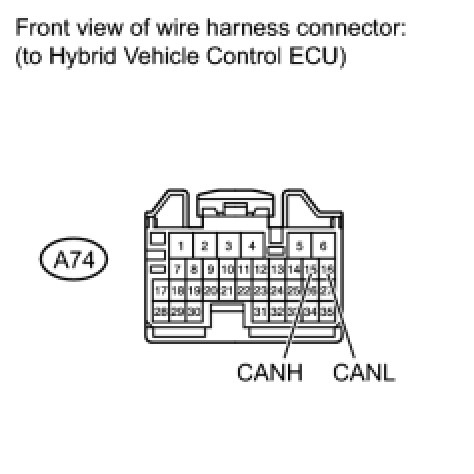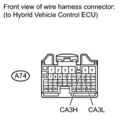 (a) Disconnect the A74 hybrid vehicle control ECU connector.