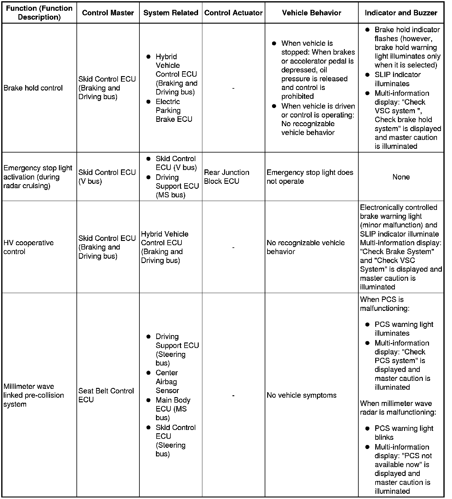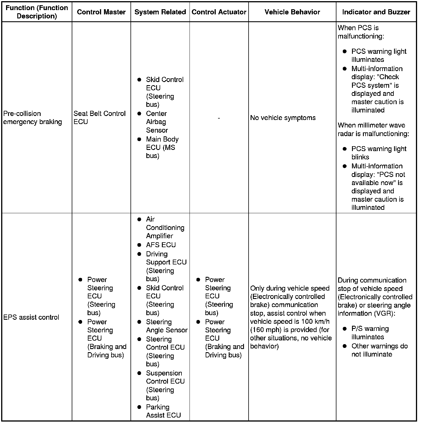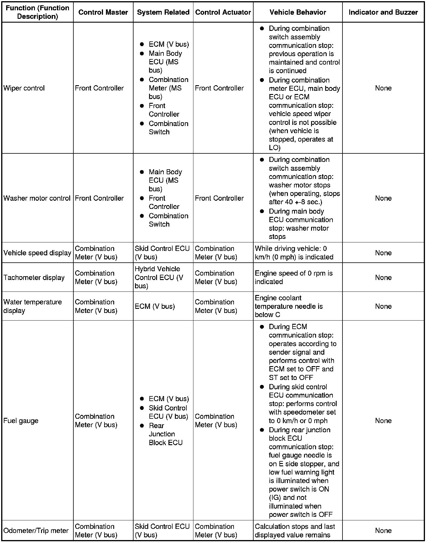 (b) The table below shows the effects on each system when communication is impossible. For further details, refer to each system.