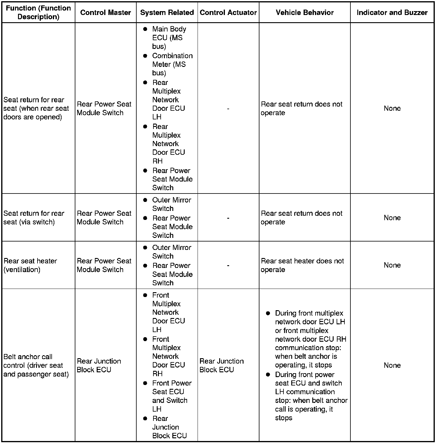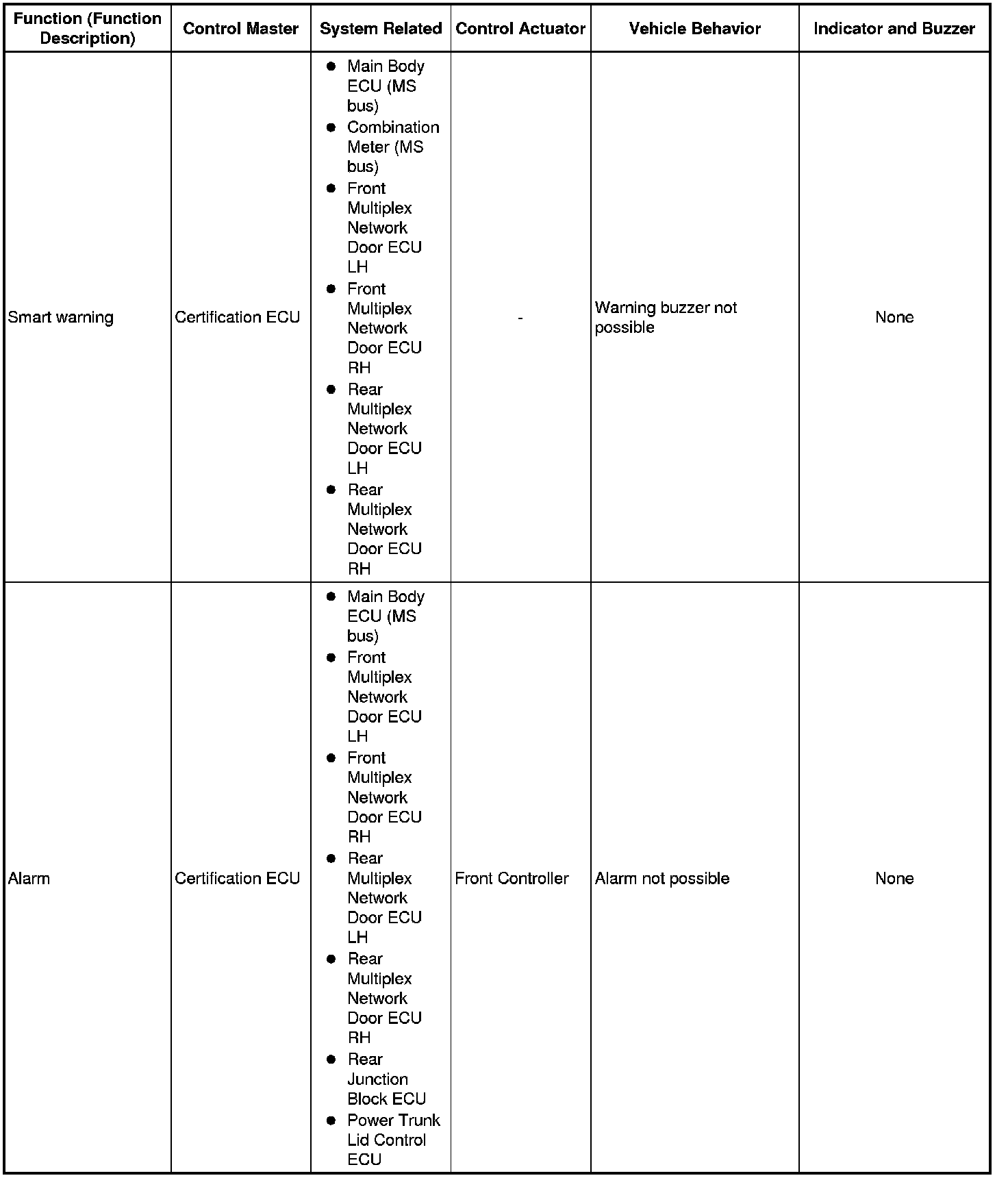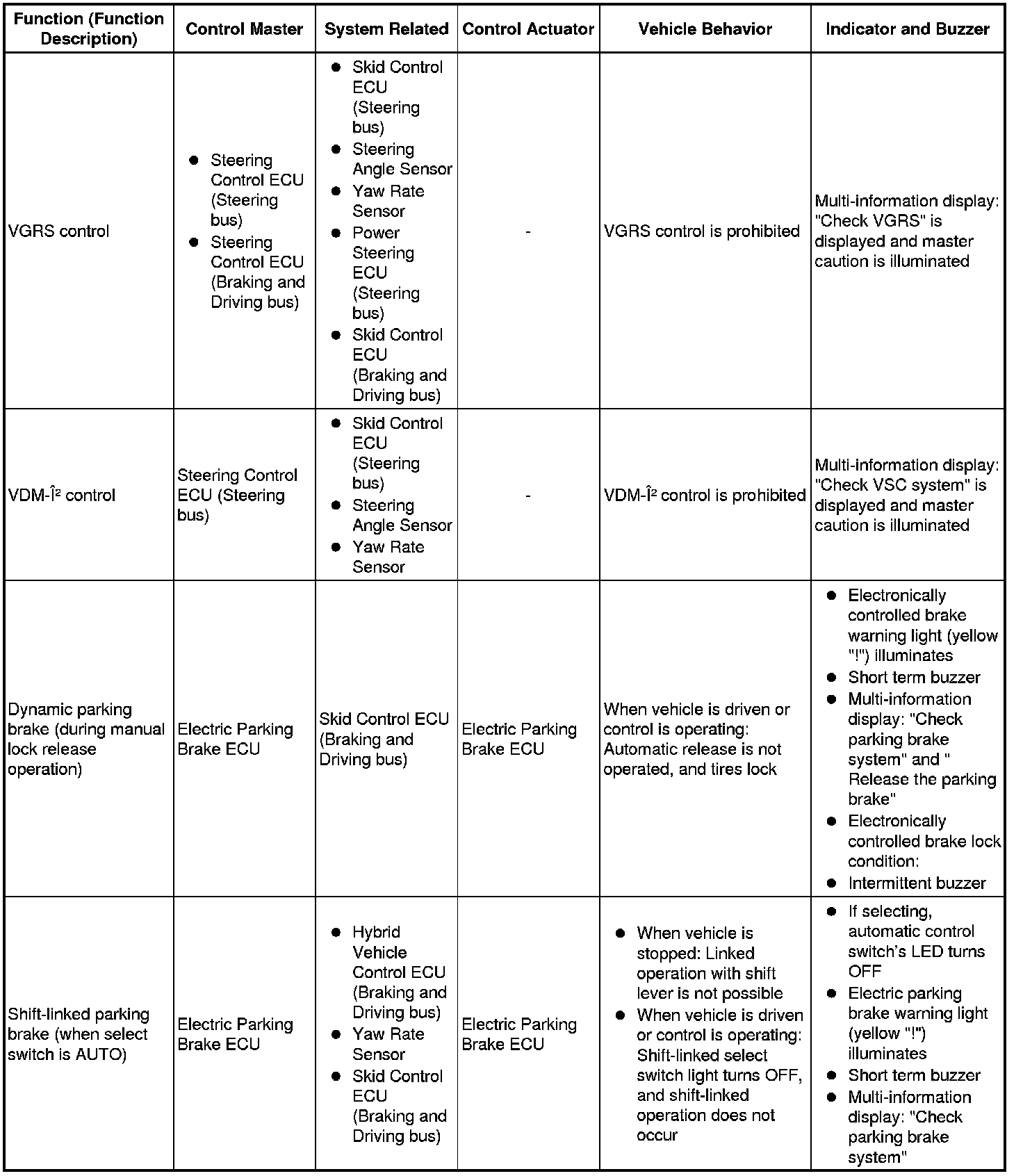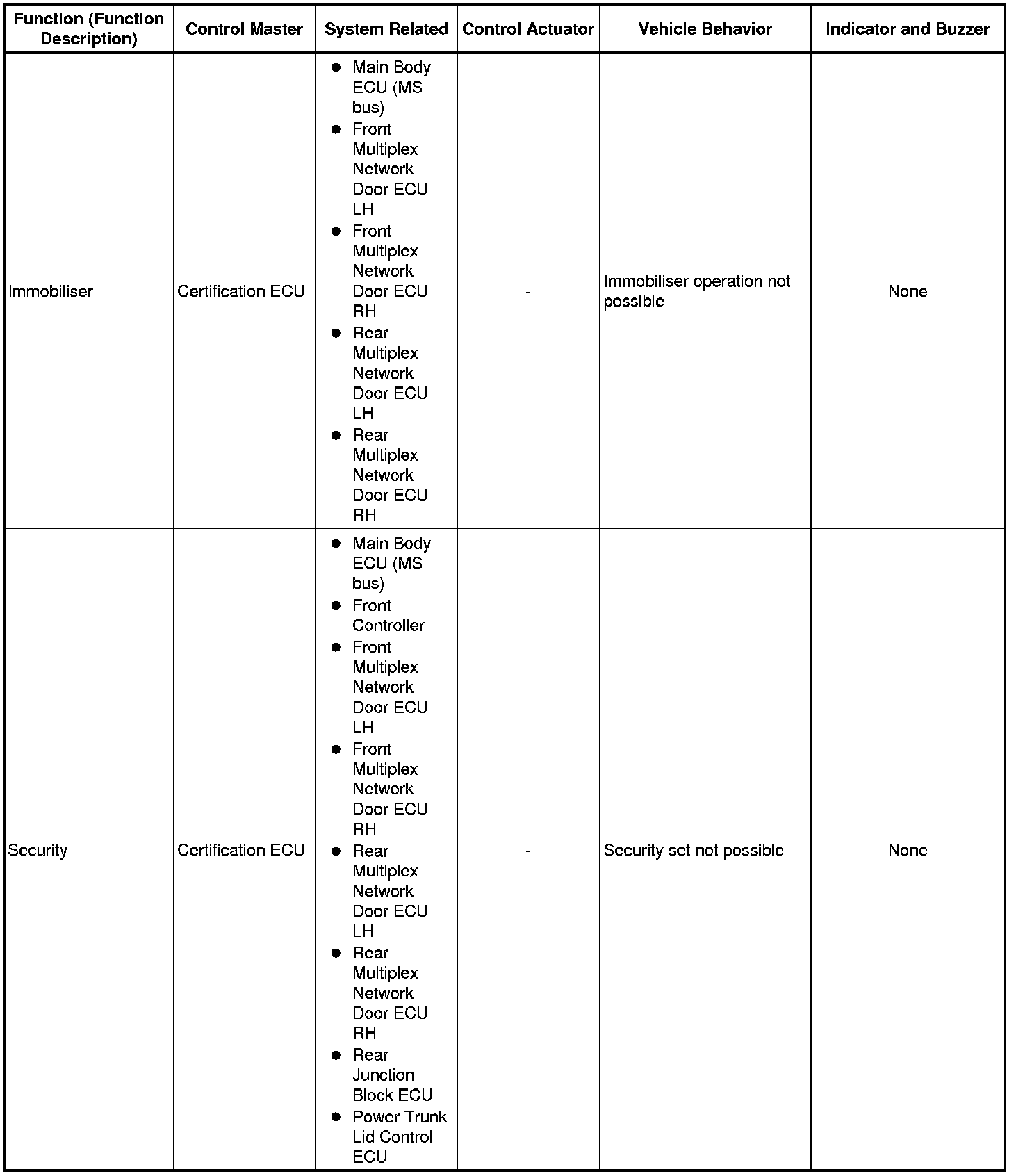 (b) The table below shows the effects on each system when communication is impossible. For further details, refer to each system.