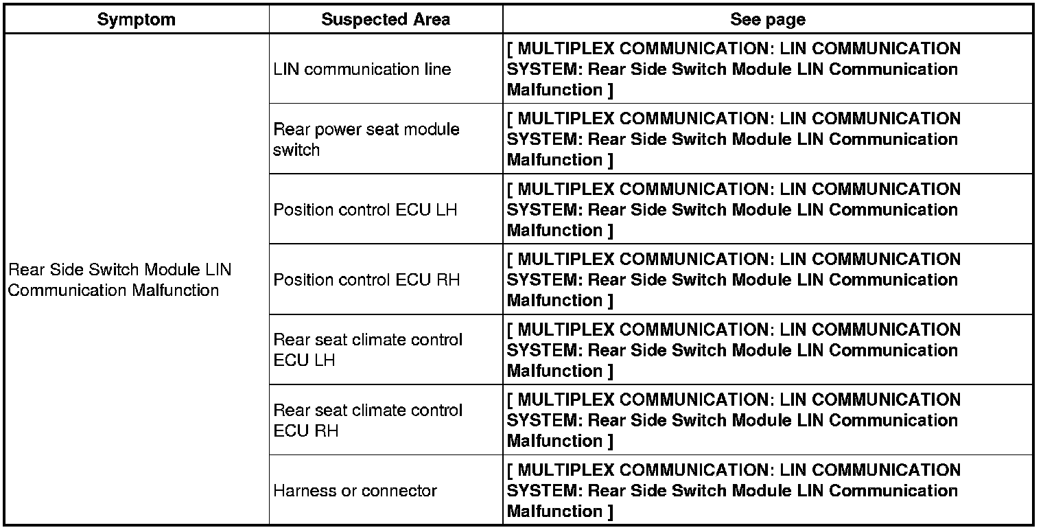MULTIPLEX COMMUNICATION: LIN COMMUNICATION SYSTEM: PROBLEM SYMPTOMS TABLE
