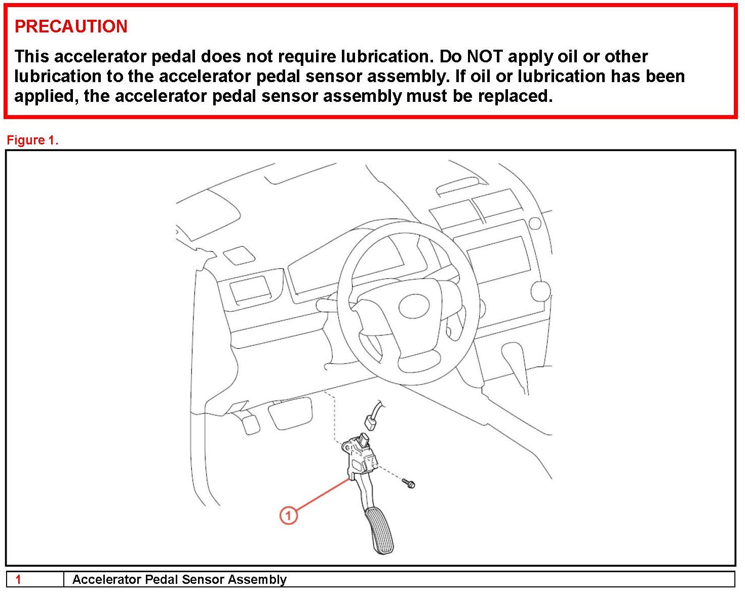 This bulletin provides a service precaution related to the accelerator pedal sensor assembly during inspection, removal, and installation.