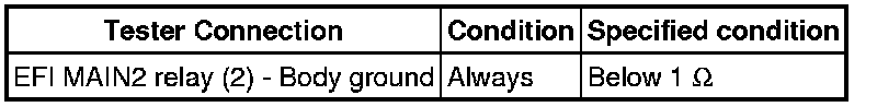 (b) Check the harness and the connectors between the EFI MAIN2 relay and body ground.