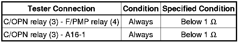 11. CHECK HARNESS AND CONNECTOR (CIRCUIT OPENING RELAY (C/OPN) TO FUEL PUMP)