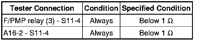 (3) Disconnect the S11 fuel pump connector.