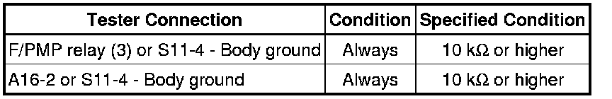 13. CHECK HARNESS AND CONNECTOR (FUEL PUMP - BODY GROUND)