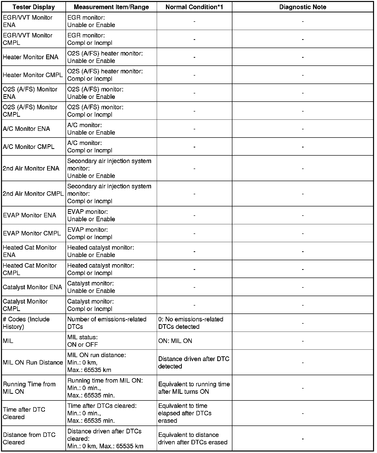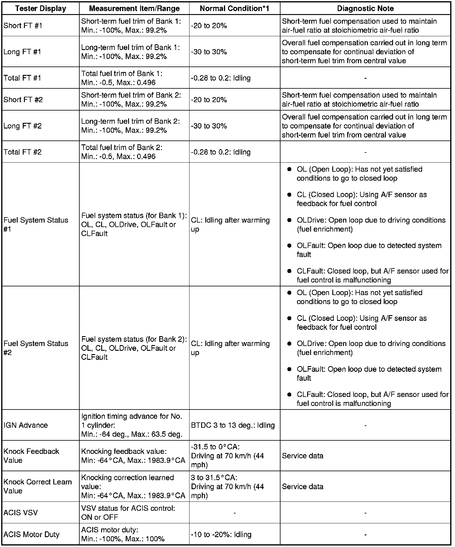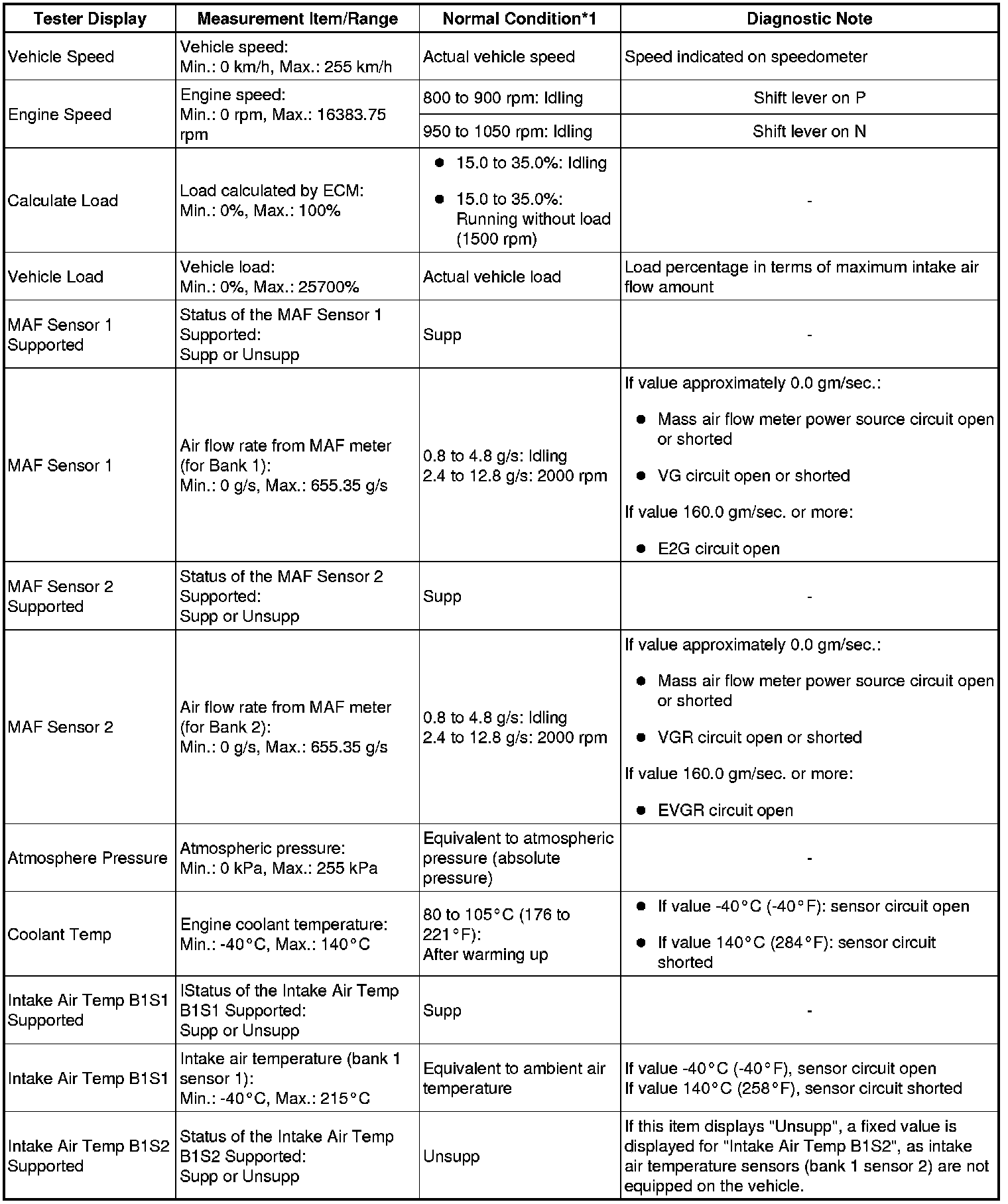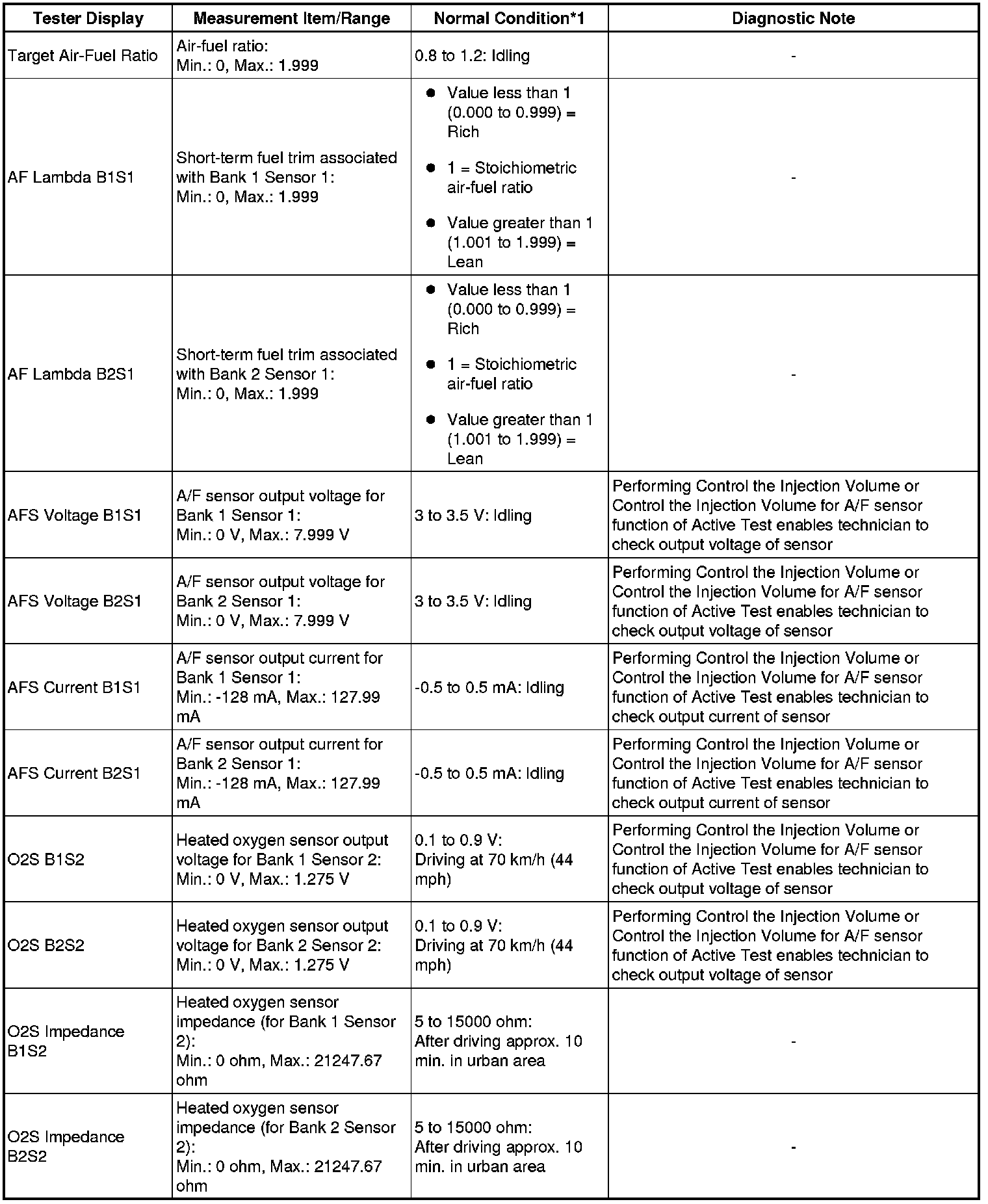 * *1: If no idling conditions are specified, the shift lever should be in the N or P position, and the A/C switch and all accessory switches should be OFF.