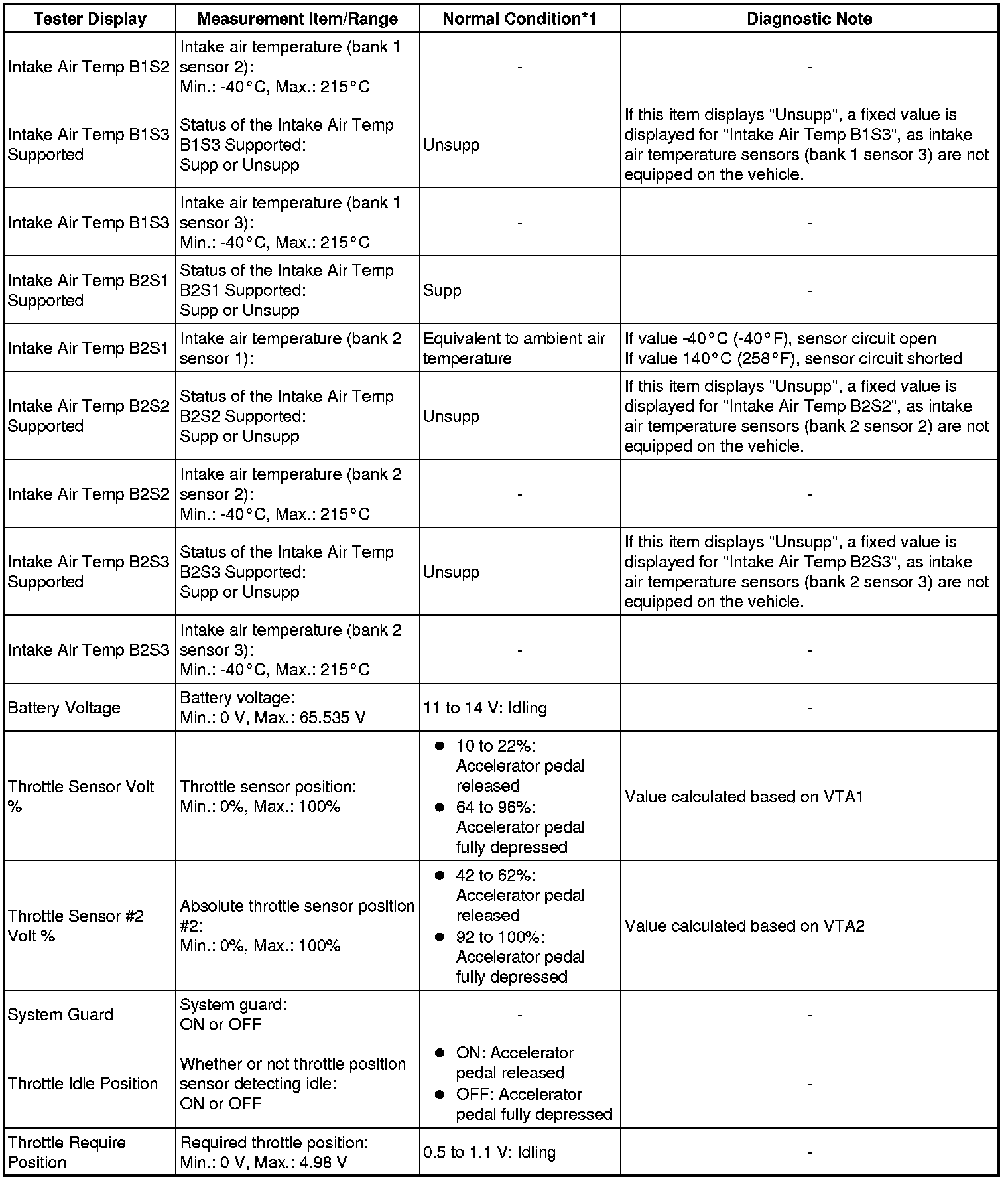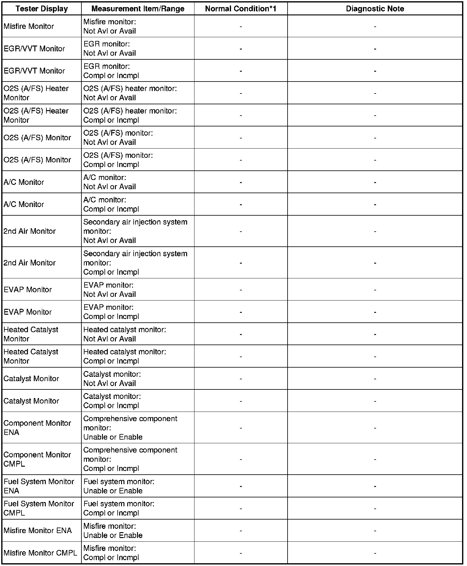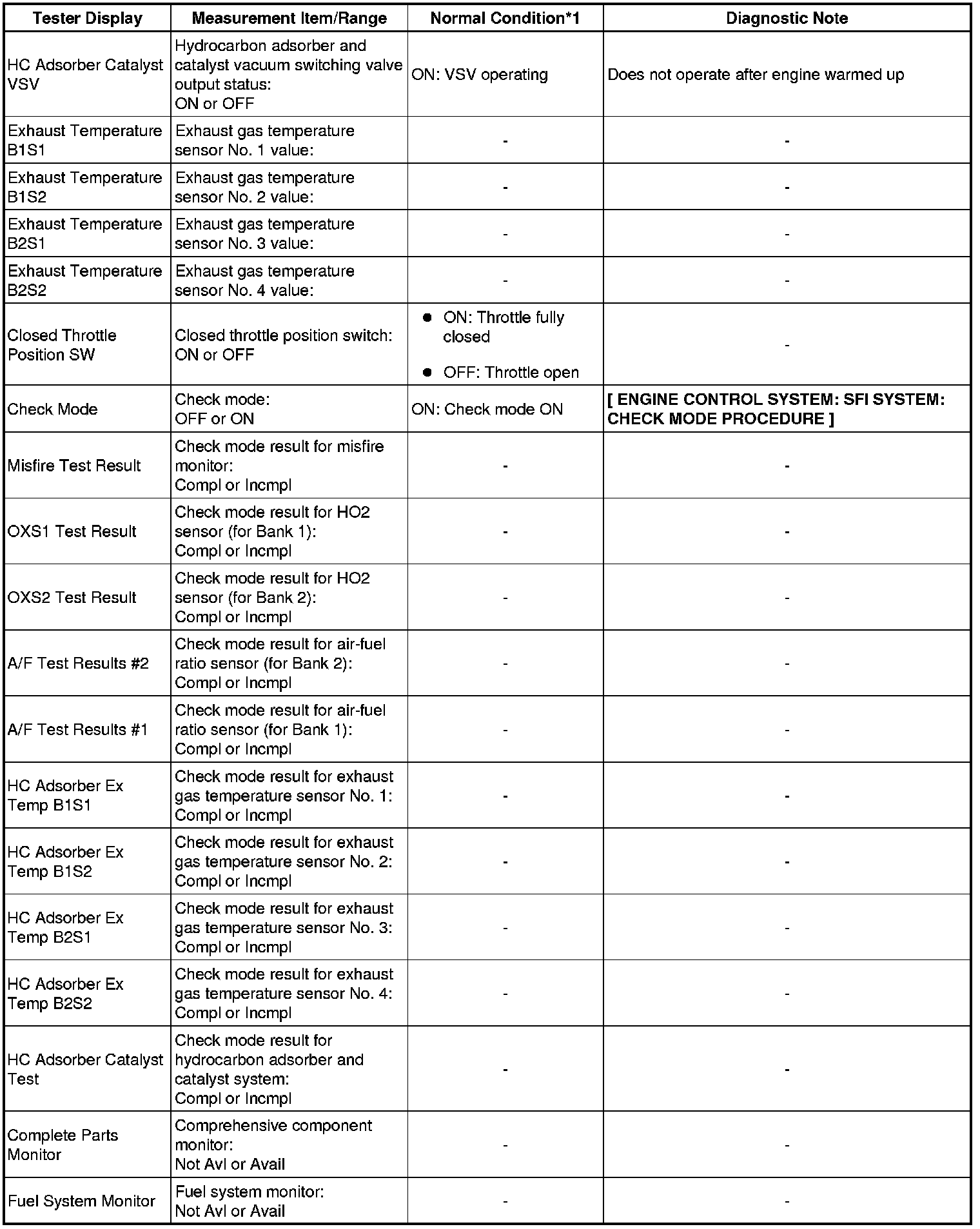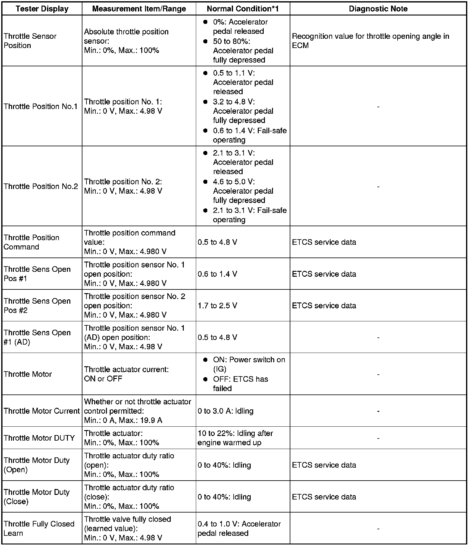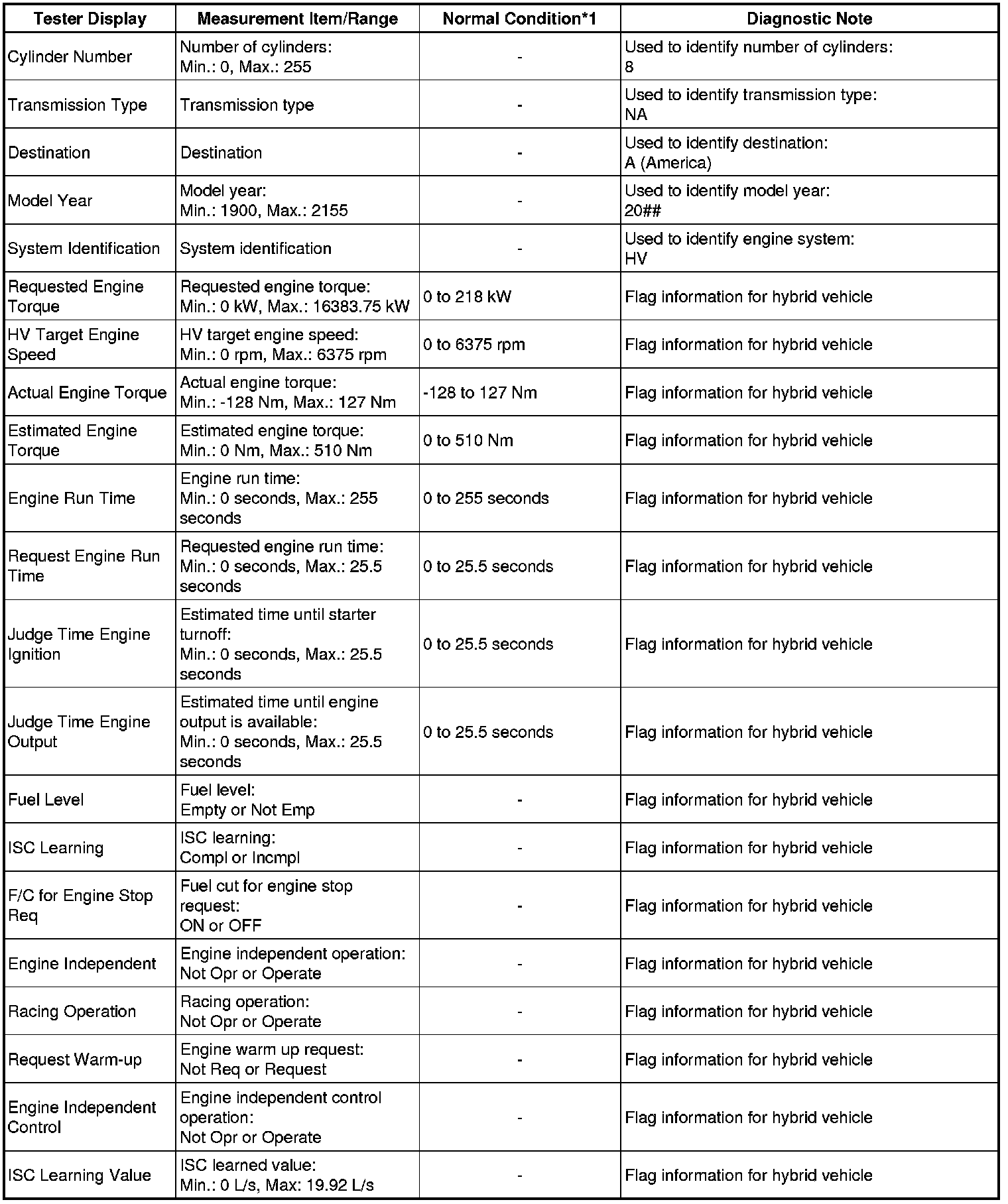 * *1: If no idling conditions are specified, the shift lever should be in the N or P position, and the A/C switch and all accessory switches should be OFF.