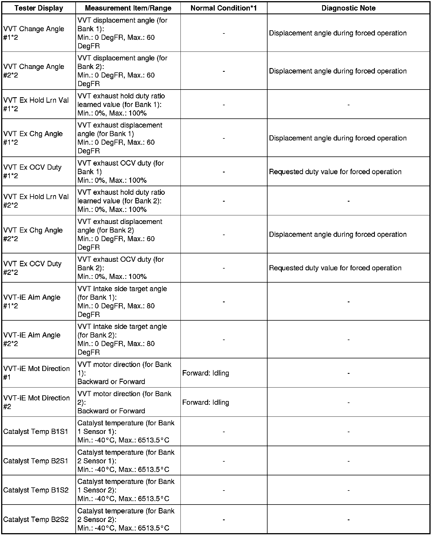* *2: Data List values are only displayed when performing the following Active Tests: Control the VVT-iE Linear (Bank1), Control the VVT-iE Linear (Bank2), Control the Exhaust Linear (Bank1) and Control the Exhaust Linear (Bank2). For other Active Tests, the Data List value will be 0.