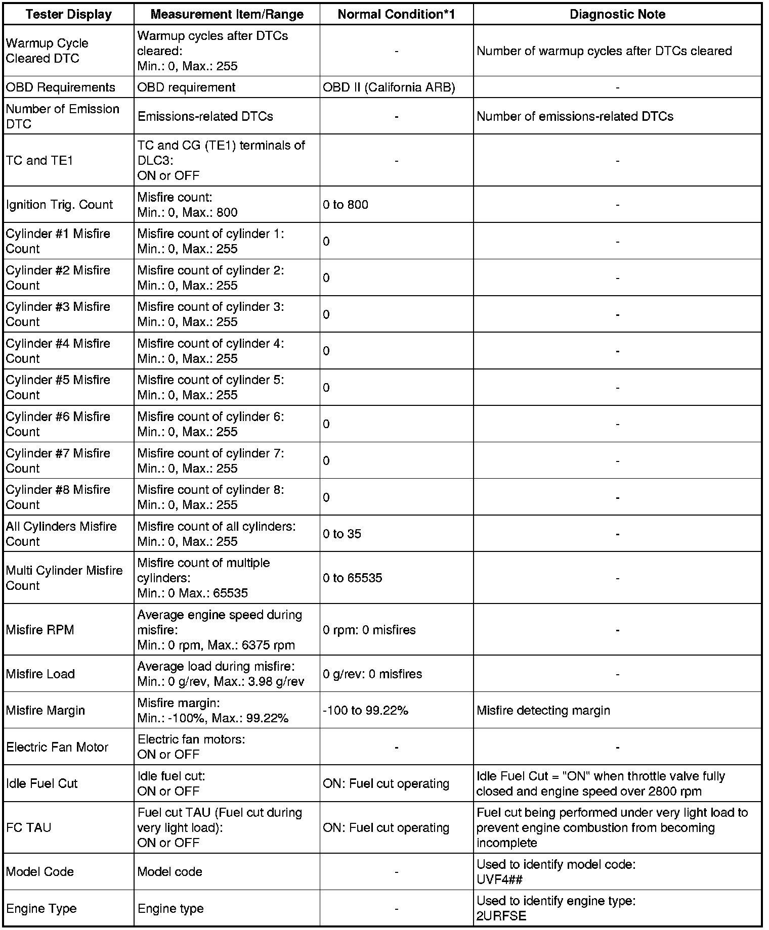 2UR-FSE ENGINE CONTROL SYSTEM: SFI SYSTEM: DATA LIST / ACTIVE TEST