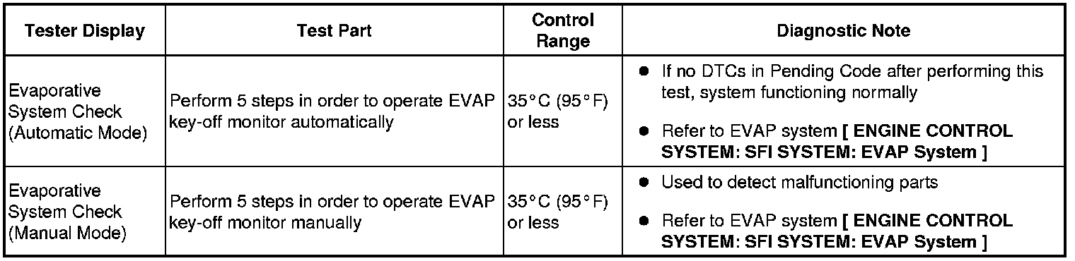 (e) Perform the System Check by referring to the table below.