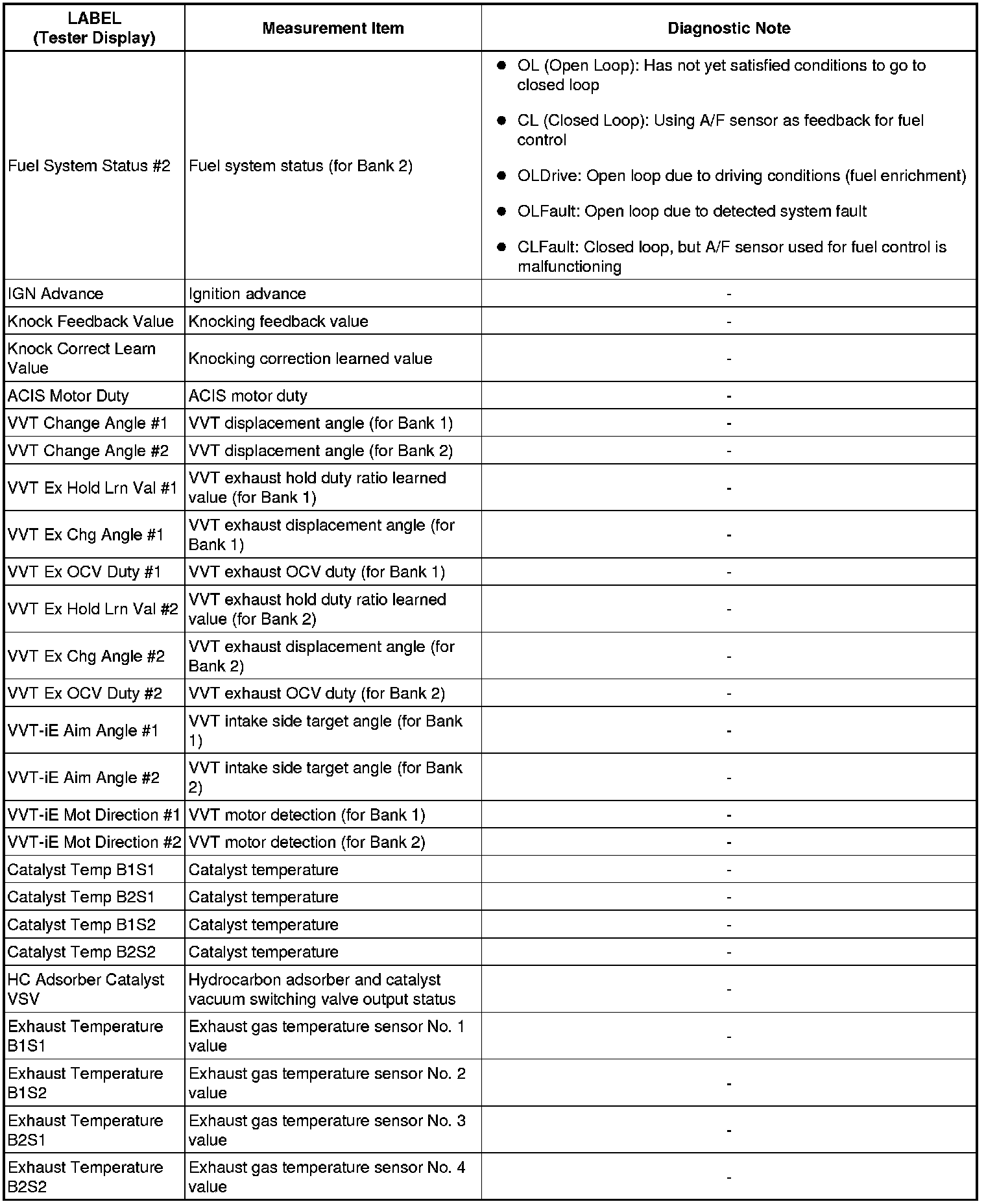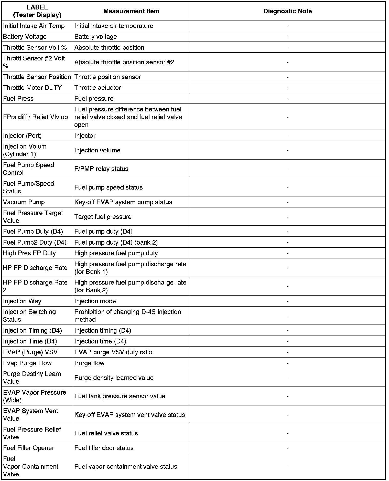 2UR-FSE ENGINE CONTROL SYSTEM: SFI SYSTEM: FREEZE FRAME DATA
