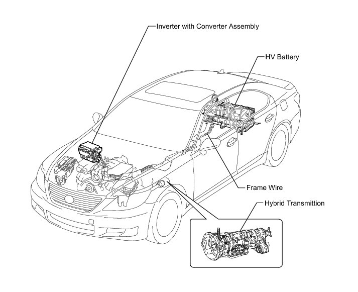(b) All high-voltage wire harnesses are colored orange. The HV battery and other high-voltage components have "High Voltage" caution labels. Do not carelessly touch these wires and components.