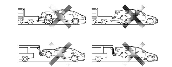 (d) The towing methods shown below are dangerous and can damage the vehicle, so do not use them.