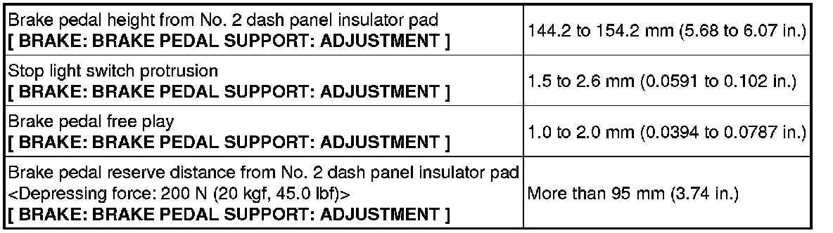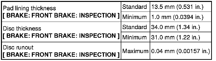 SERVICE SPECIFICATIONS: BRAKE: SERVICE DATA