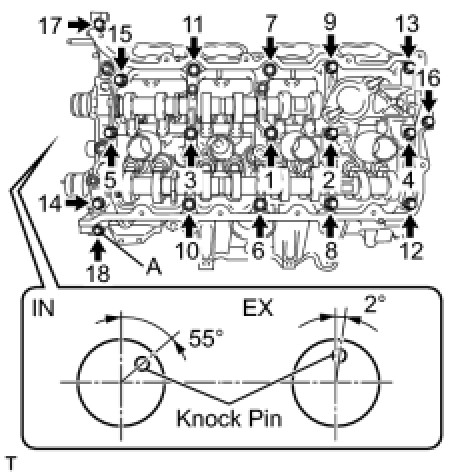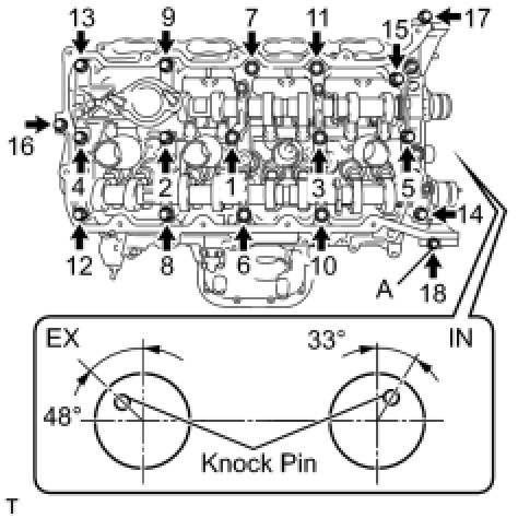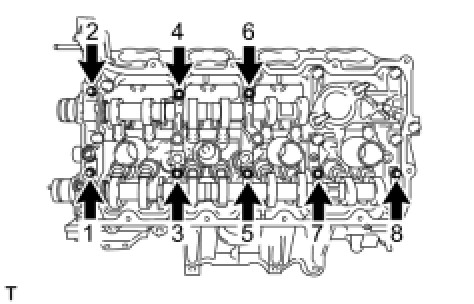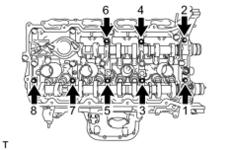 Install the camshaft housing, and install the 18 bolts in the order shown in the illustration.
