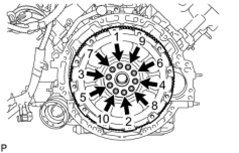 Uniformly install and tighten the 10 bolts in the sequence shown in the illustration