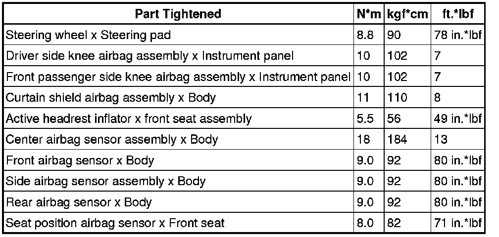 SERVICE SPECIFICATIONS: SUPPLEMENTAL RESTRAINT SYSTEM: TORQUE SPECIFICATIONS