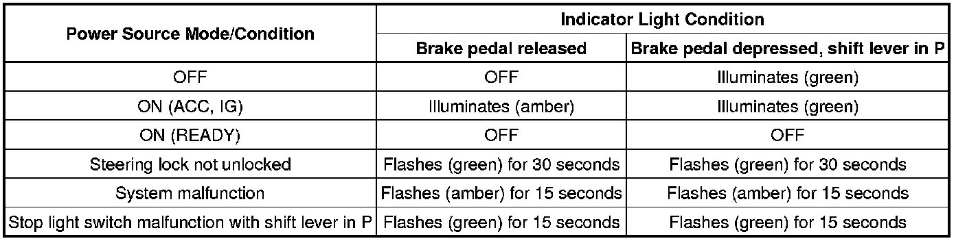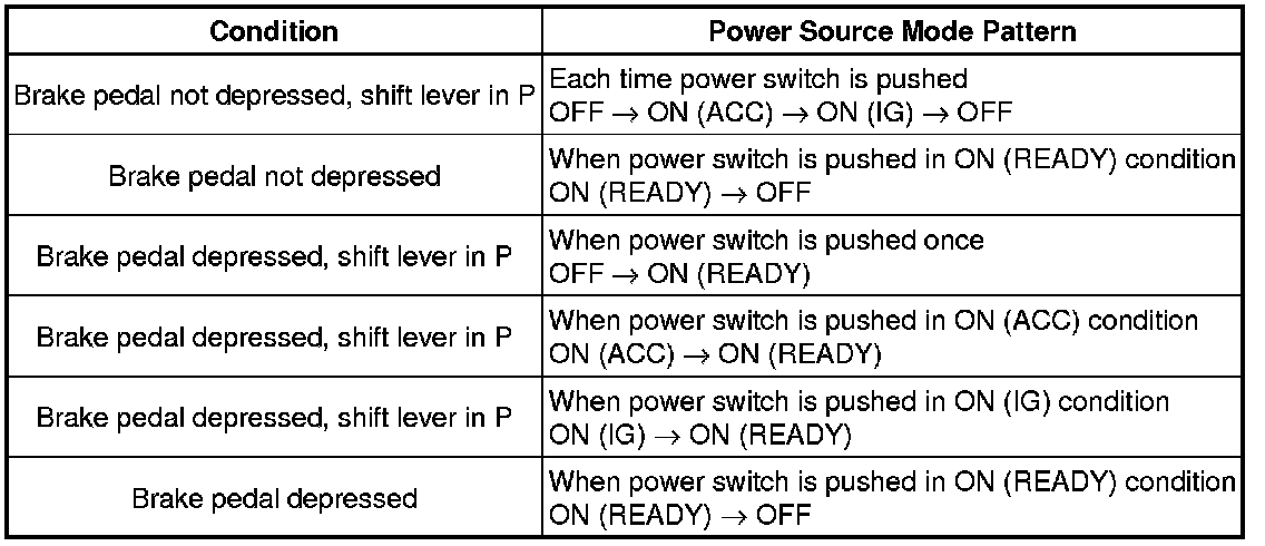 (b) This system has different power source mode patterns depending on the brake pedal and shift lever conditions.