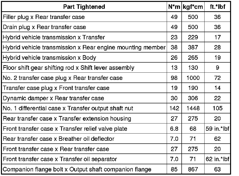 SERVICE SPECIFICATIONS: LF1A TRANSFER: TORQUE SPECIFICATIONS