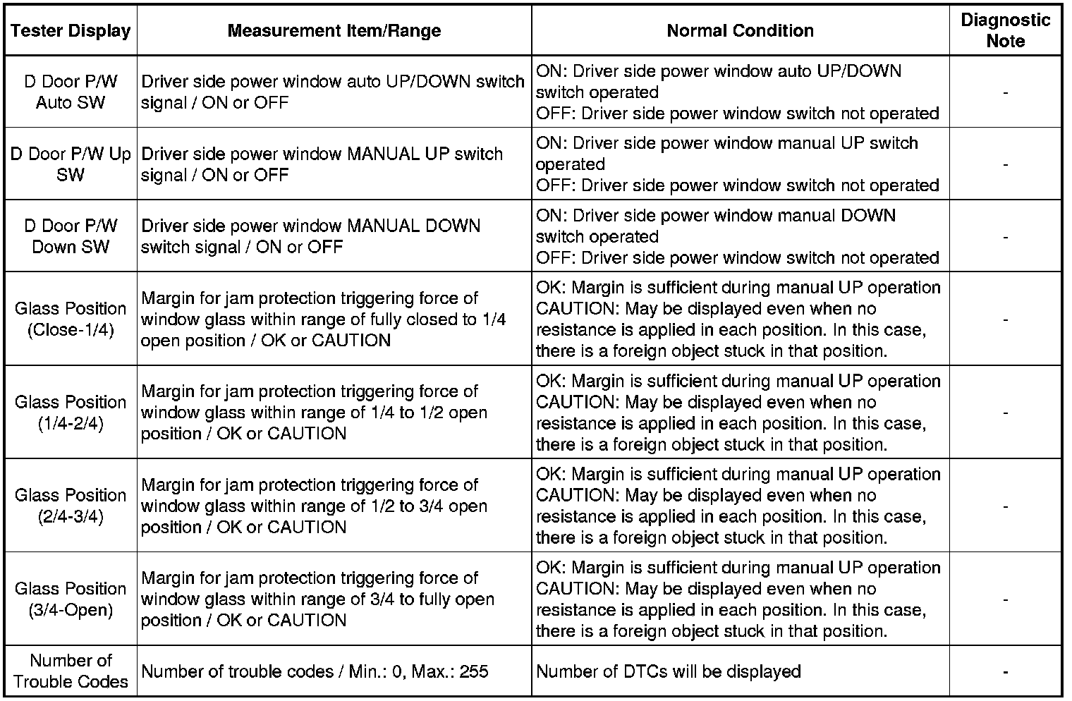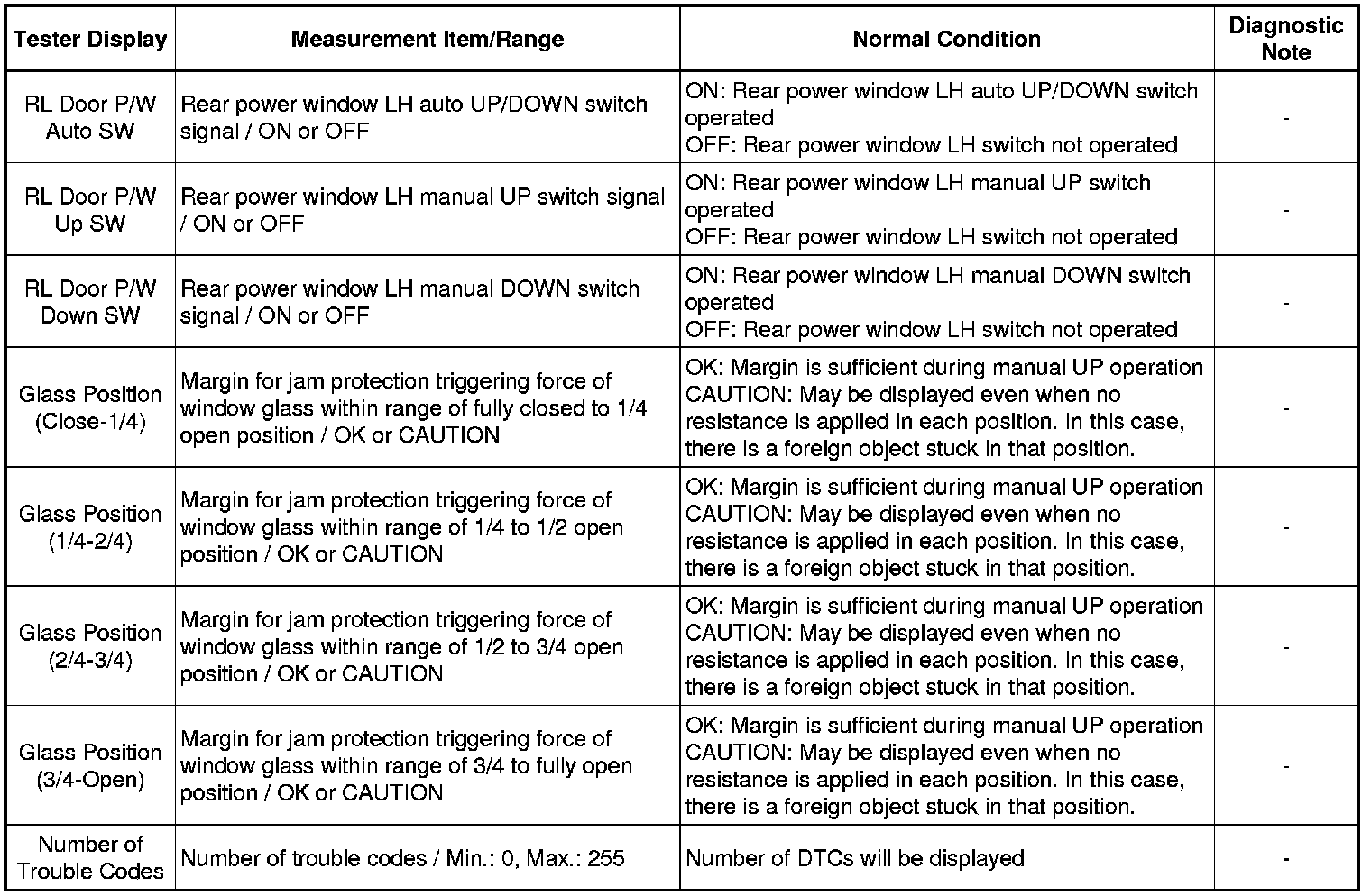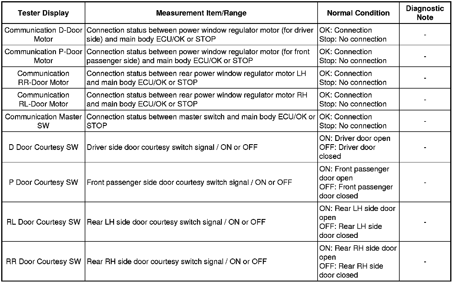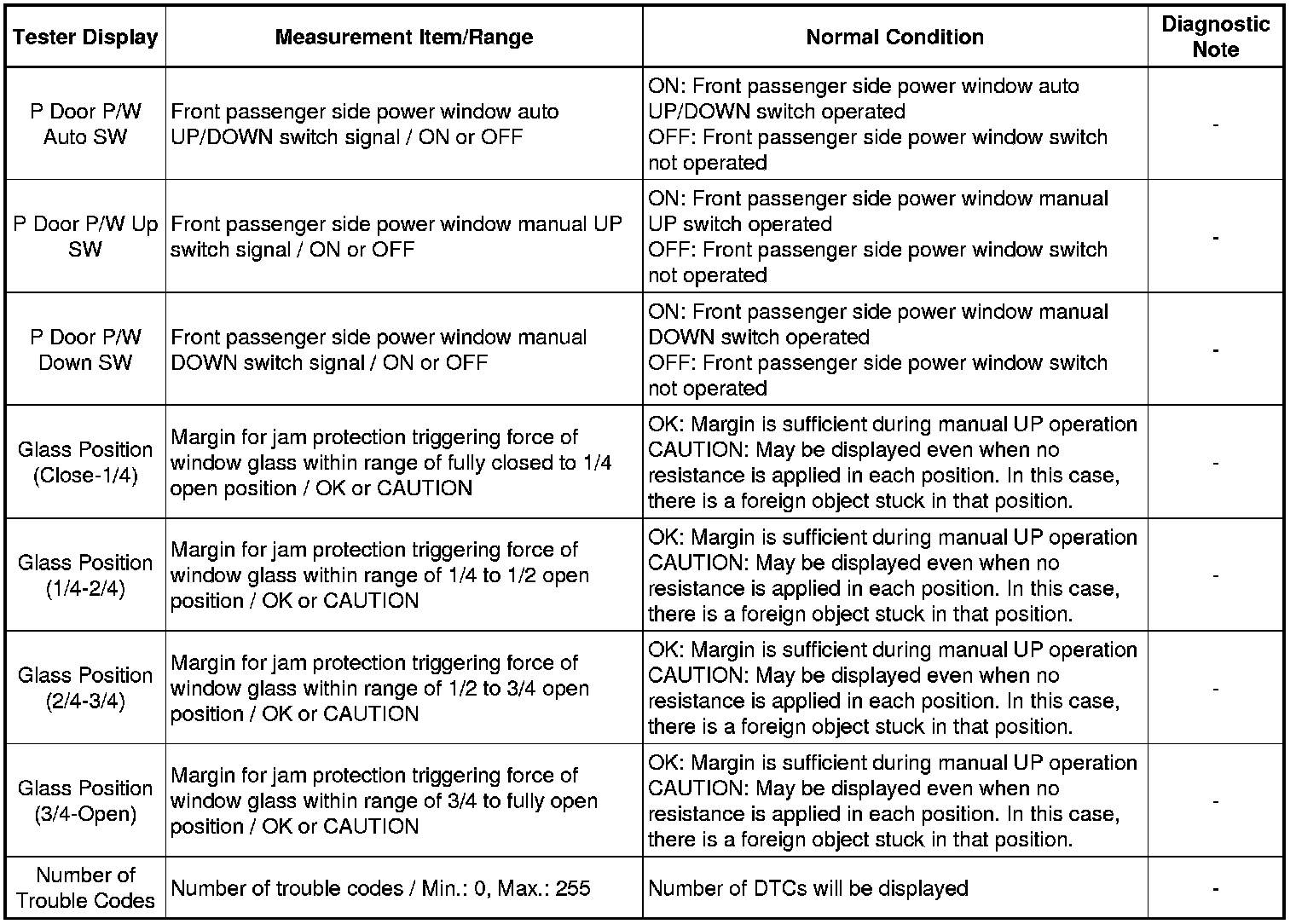 WINDSHIELD / WINDOWGLASS: POWER WINDOW CONTROL SYSTEM: DATA LIST / ACTIVE TEST