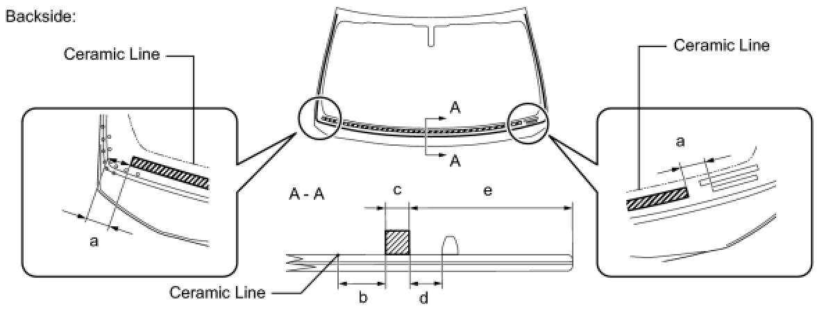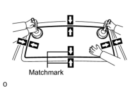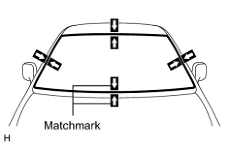 (3) Place matchmarks on the glass and vehicle body on the locations indicated in the illustration.