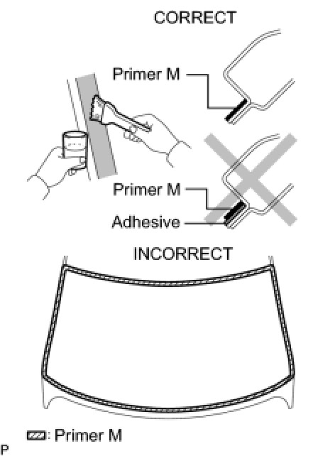 (a) Apply Primer G to the glass where the windshield glass seal will be installed.