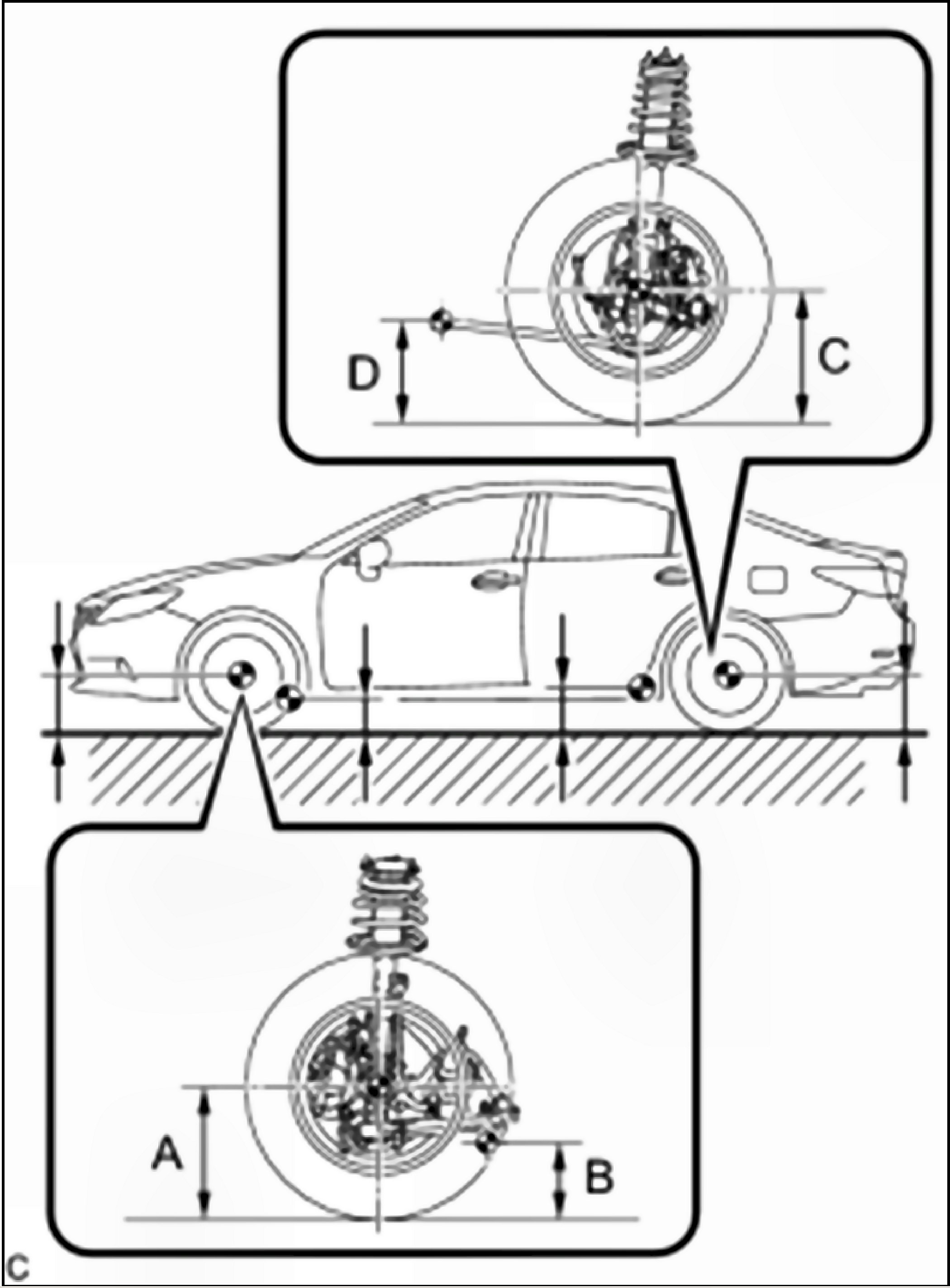 B: Ground clearance of lower No. 2 suspension arm bushing set bolt center