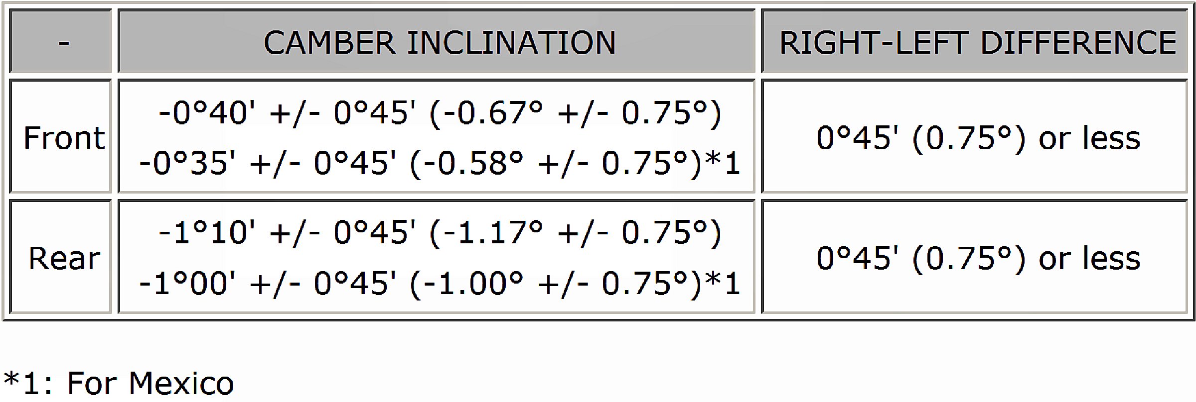 Wheel Alignment Specifications (Unloaded Vehicle)