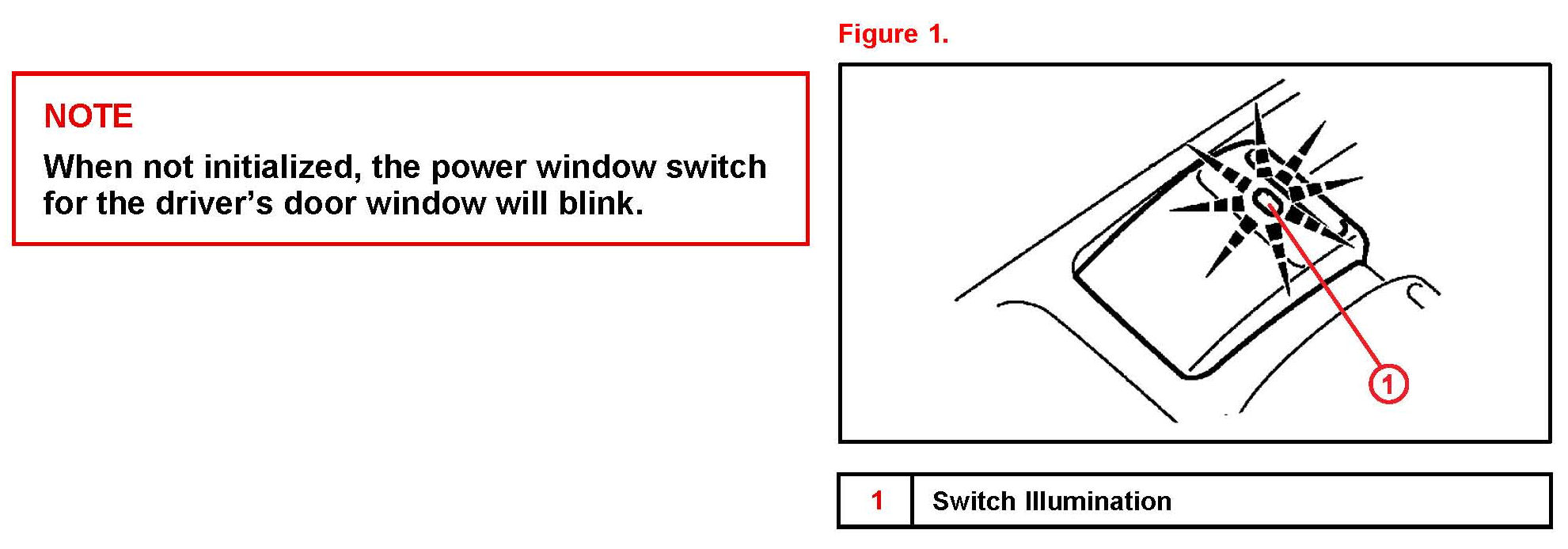 Any time the battery terminal has been disconnected, each door's power window MUST be initialized.