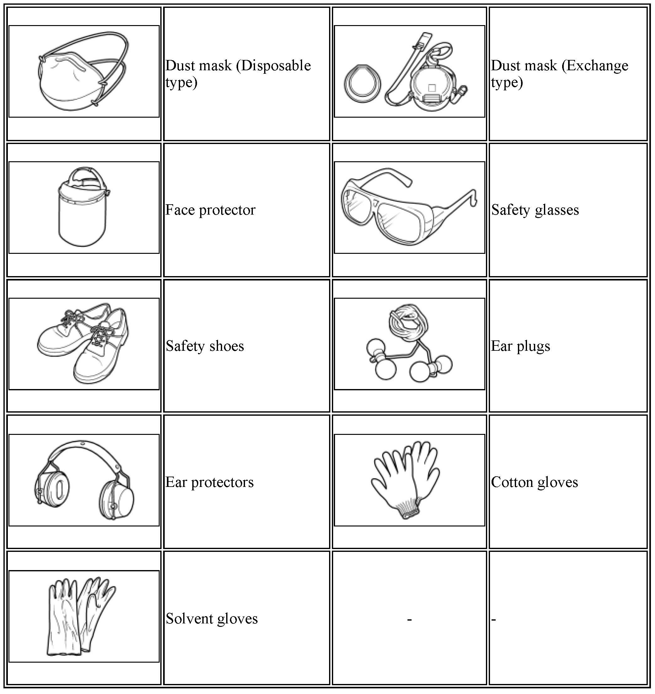 - Always wear protective glasses, ear plugs, dust masks, and other protective equipment to protect your eyes, ears, and respiratory system.