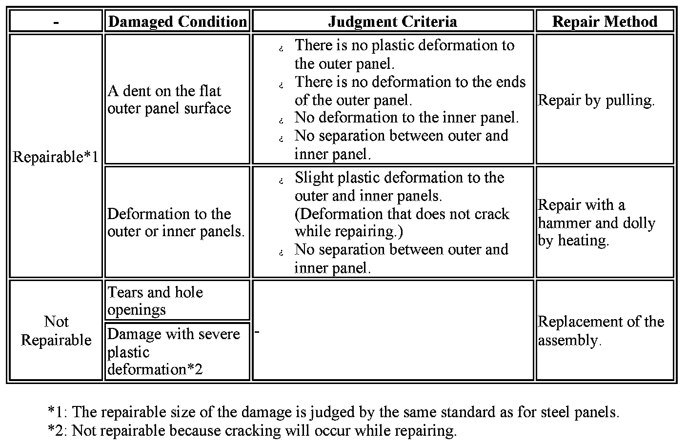 NOTICE: After the above work has been completed, conduct the following shrinking work if the tension of the repaired panel surface is inadequate.