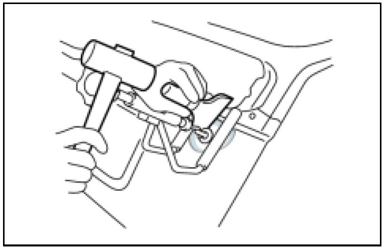 2. Attach the eye nut to the plate hook and then attach the puller hook to the eye nut. Pull outward to about 1 to 2 mm (0.04 to 0.08 in.) past the height of the undamaged surface.