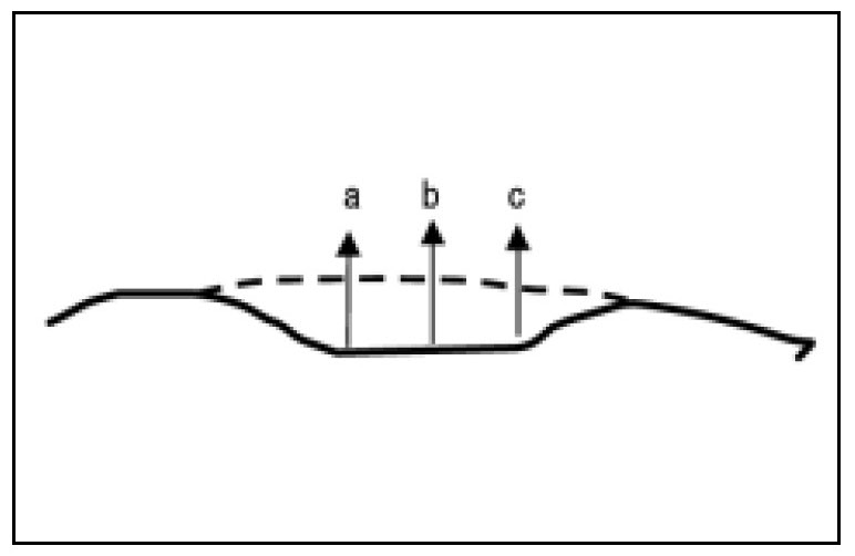 HINT: Perform procedures (d) to (i) for areas a, b and c in alphabetical order. Pull so that each area is -1 to -2 mm (-0.04 to -0.08 in.) in relation to the undamaged surface.