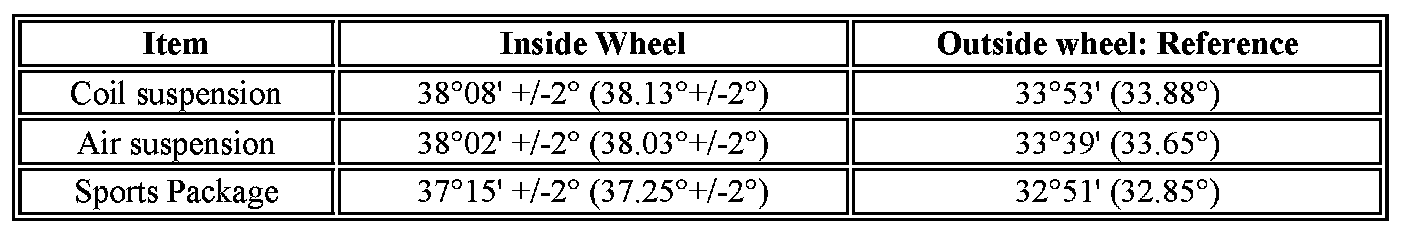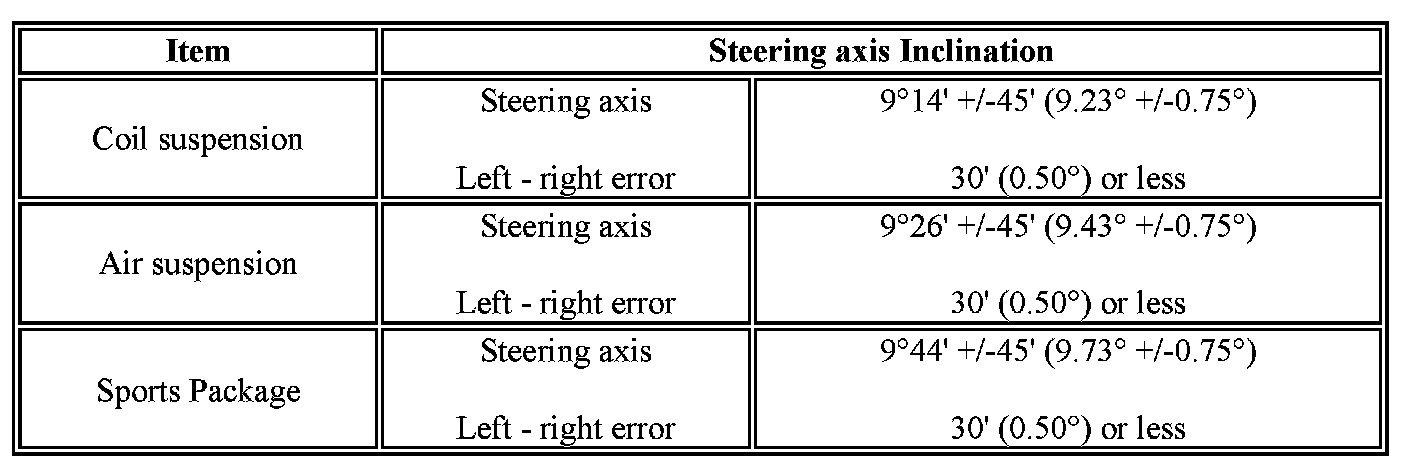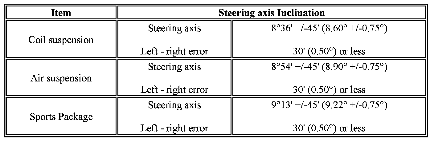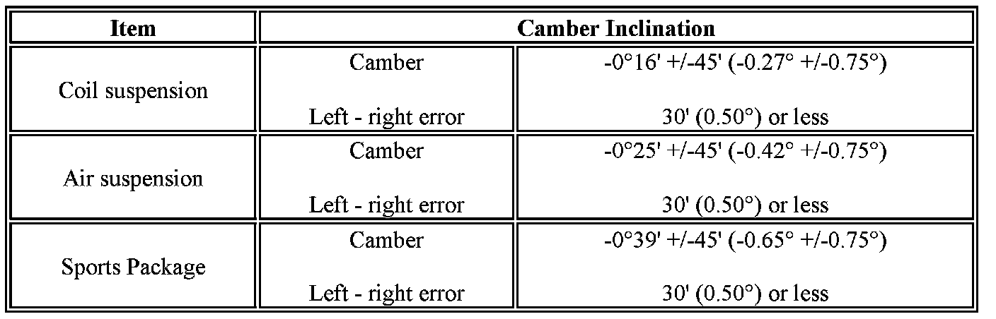 - The maximum tolerance of right and left difference for the camber is 30' or less.