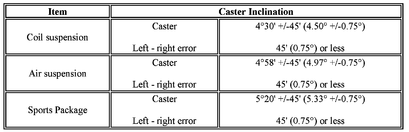 - The maximum tolerance of right and left difference for the caster is 45' or less.