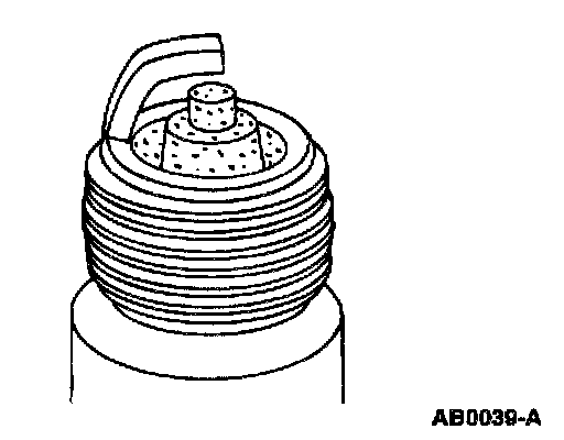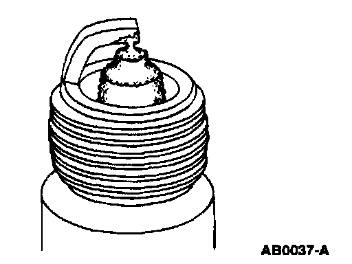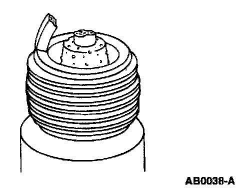 ^ Check for wet, black deposits on the insulator shell bore electrodes, caused by excessive oil entering the combustion chamber through worn rings and pistons, excessive valve-to-guide clearance or worn or loose bearings.