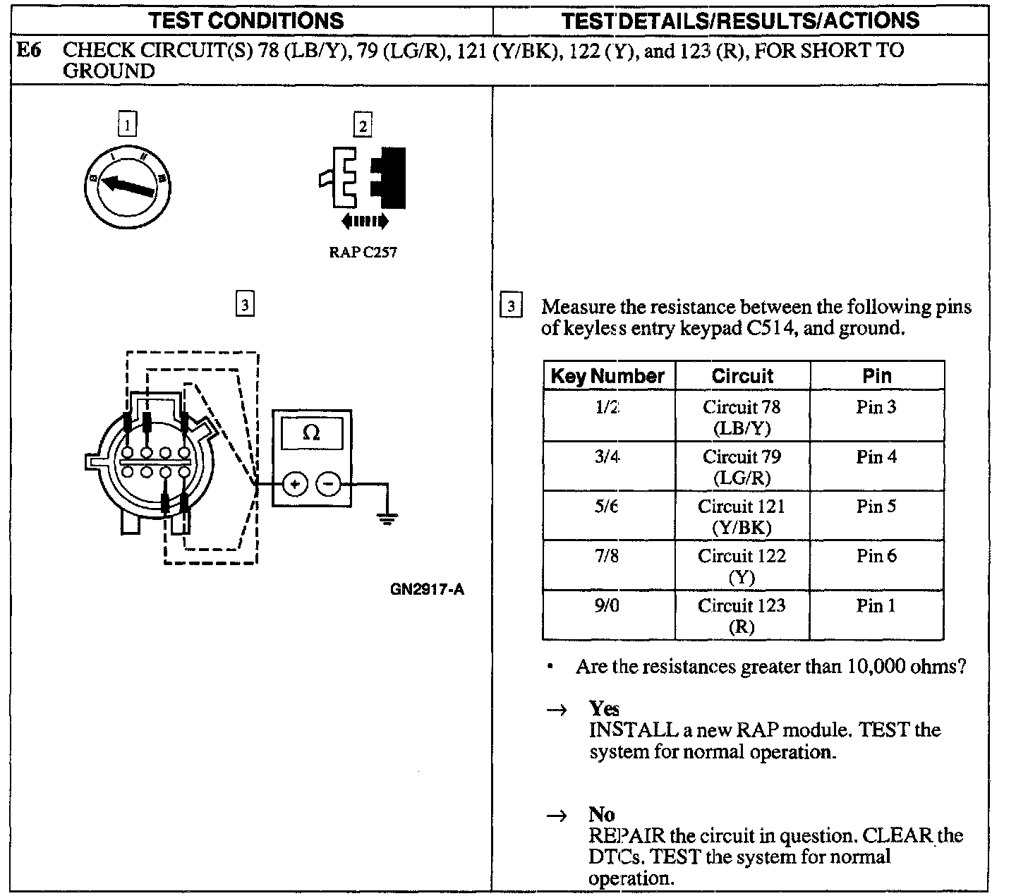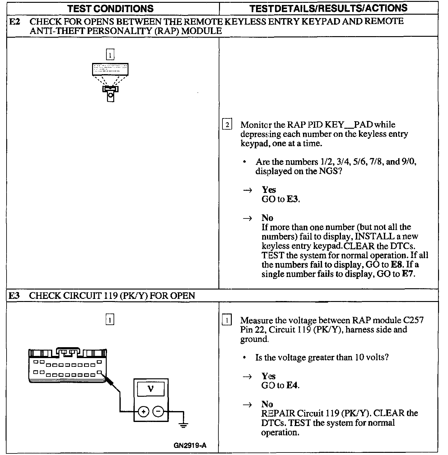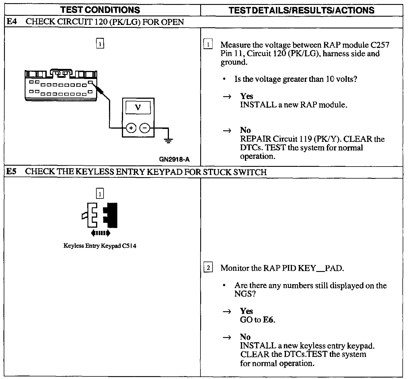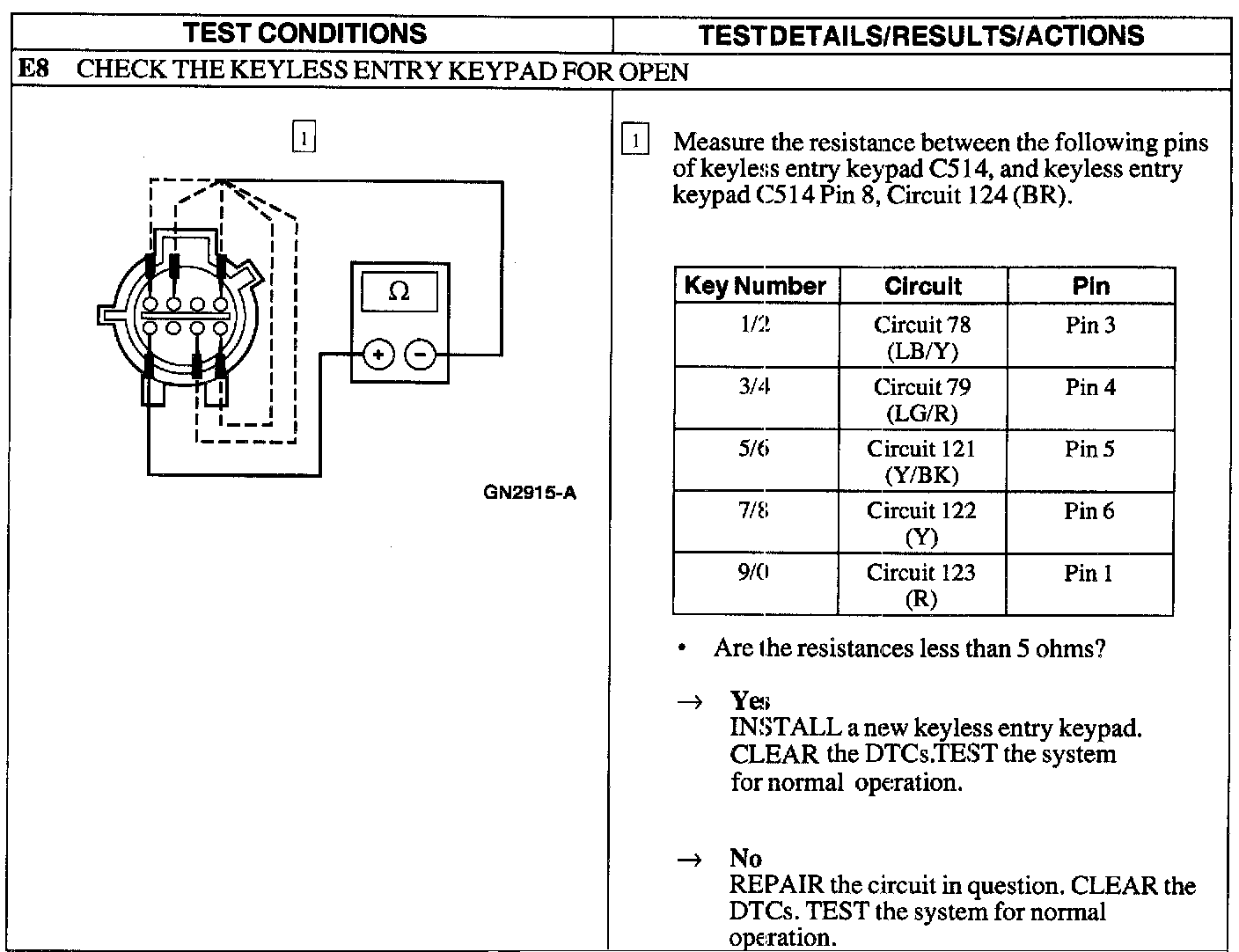 Test E: Doors Do Not Lock/Unlock Using the Keyless Entry Keypad