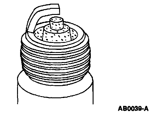 ^ Check for wet, black deposits on the insulator shell bore electrodes, caused by excessive oil entering the combustion chamber through worn rings and pistons, excessive valve-to-guide clearance or worn or loose bearings.