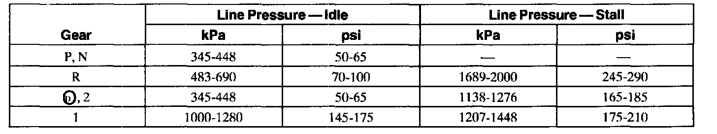 Line Pressure Chart