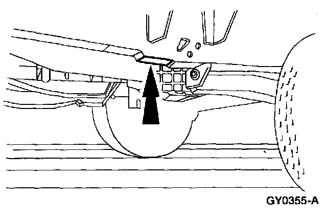 ^ SUPPORT THE VEHICLE PRIOR TO PERFORMING ANY PROCEDURE REQUIRING THE VEHICLE TO BE JACKED OFF THE GROUND.