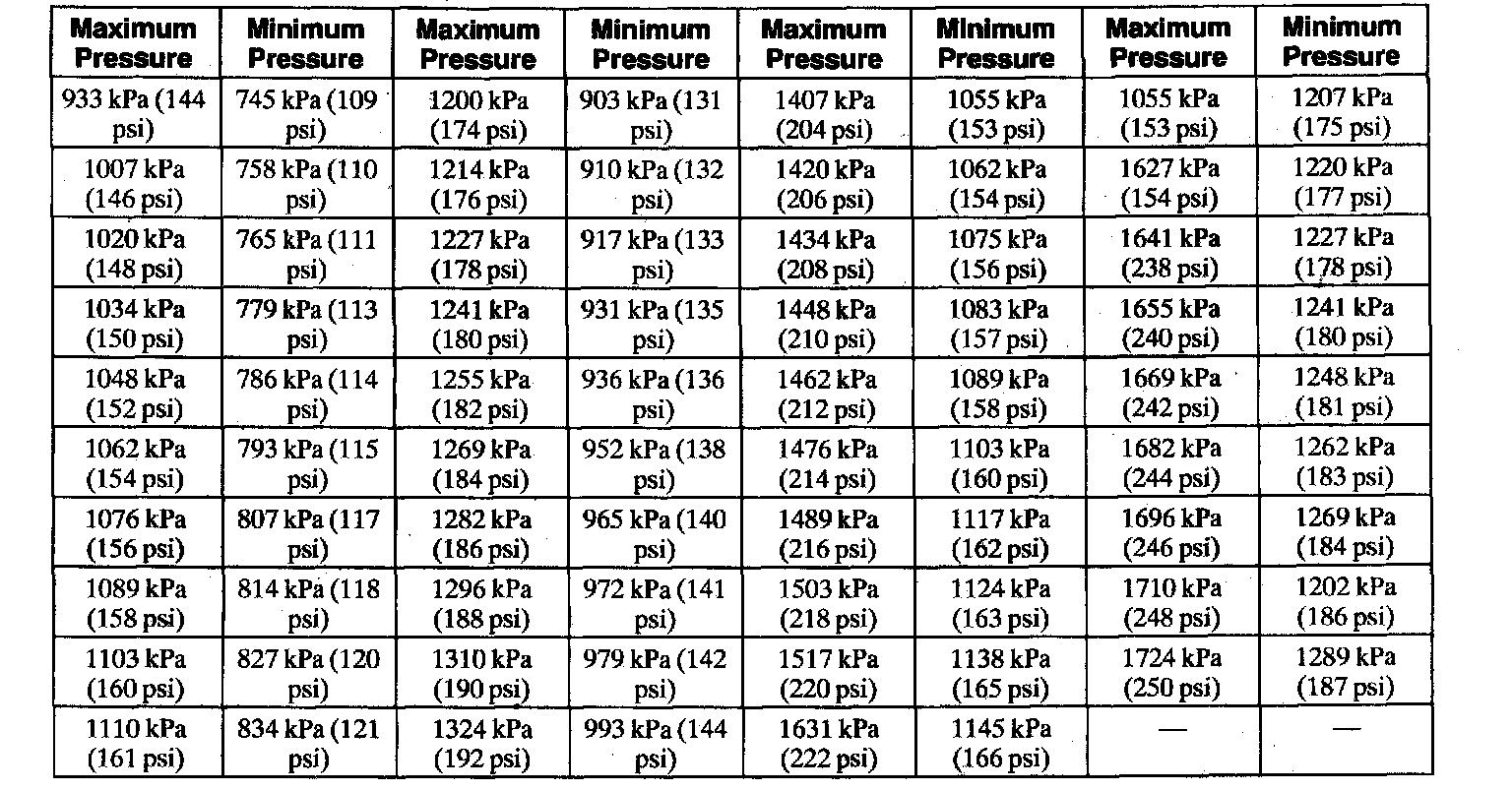 Compression Pressure Limit Chart
