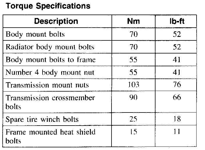 Torque Specifications: