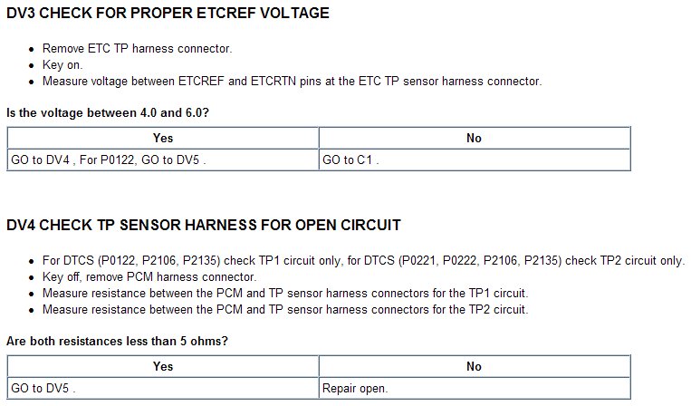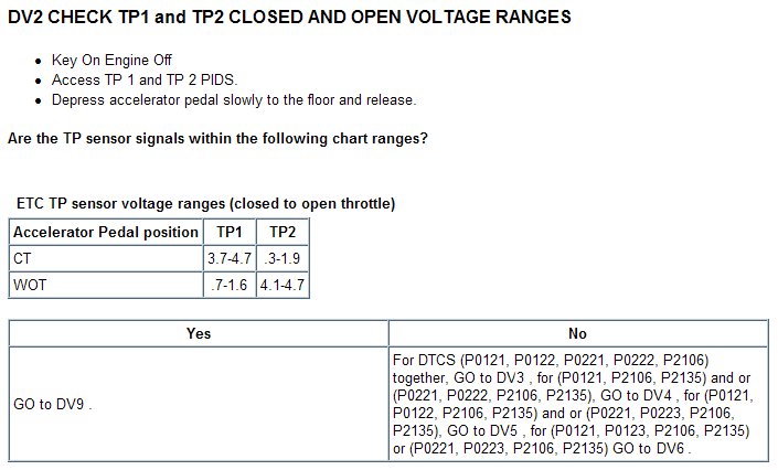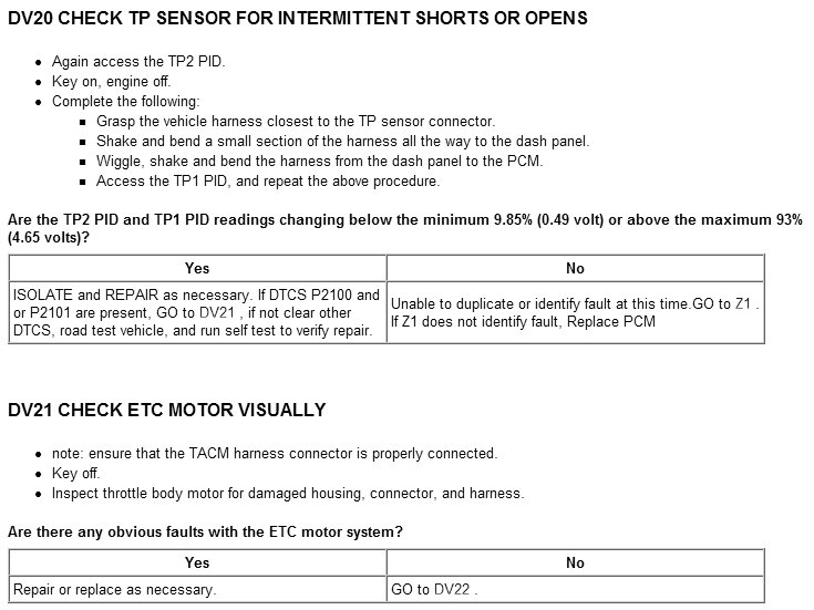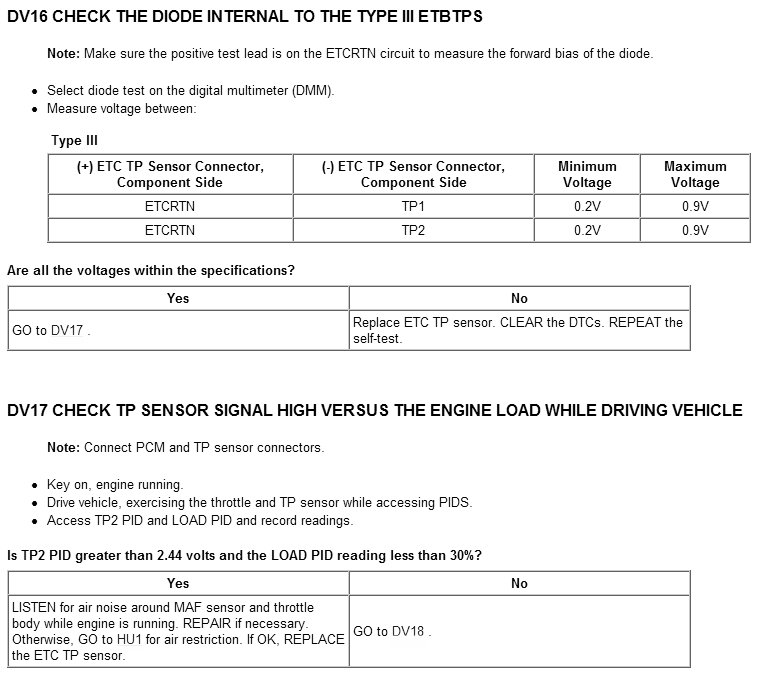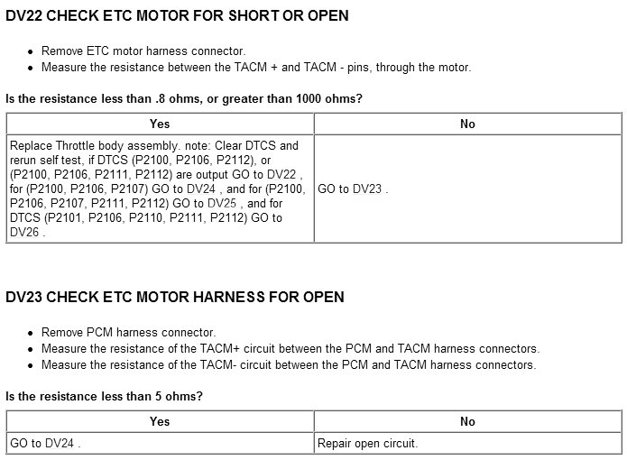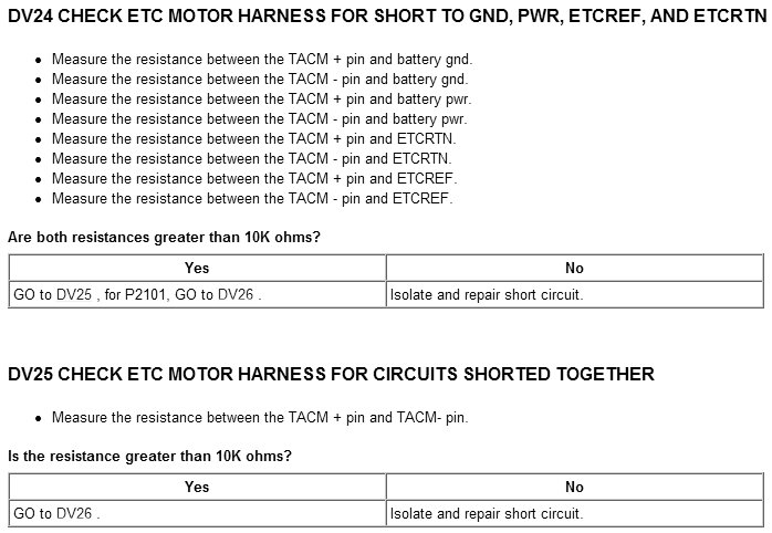 Tests DV: Electronic Throttle Control TPS Throttle Control Motor