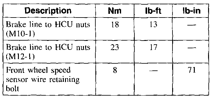 Torque Specifications
