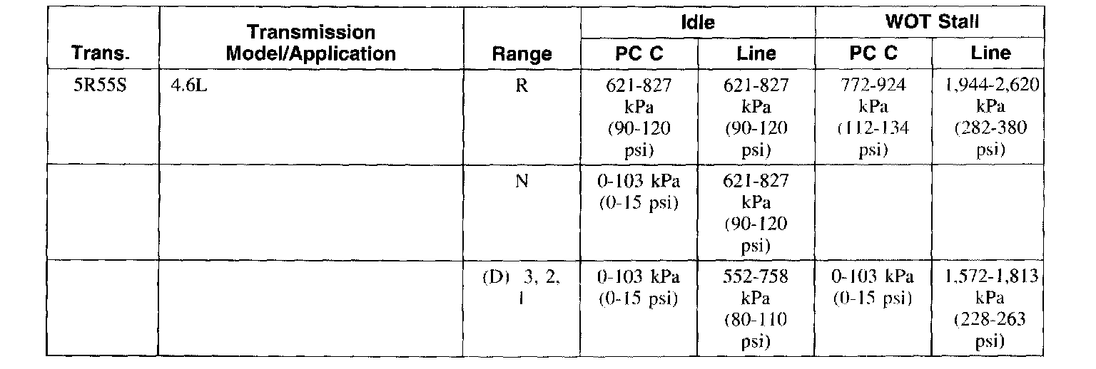 Line Pressure Chart