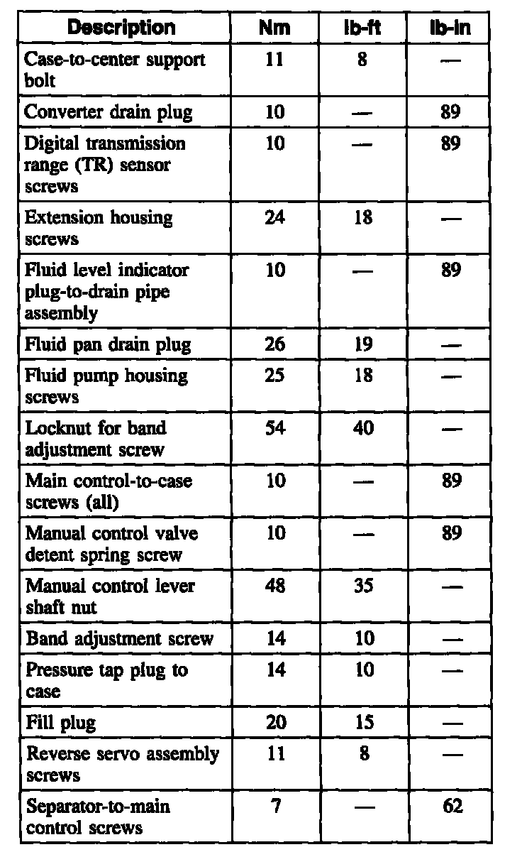 Torque Specifications