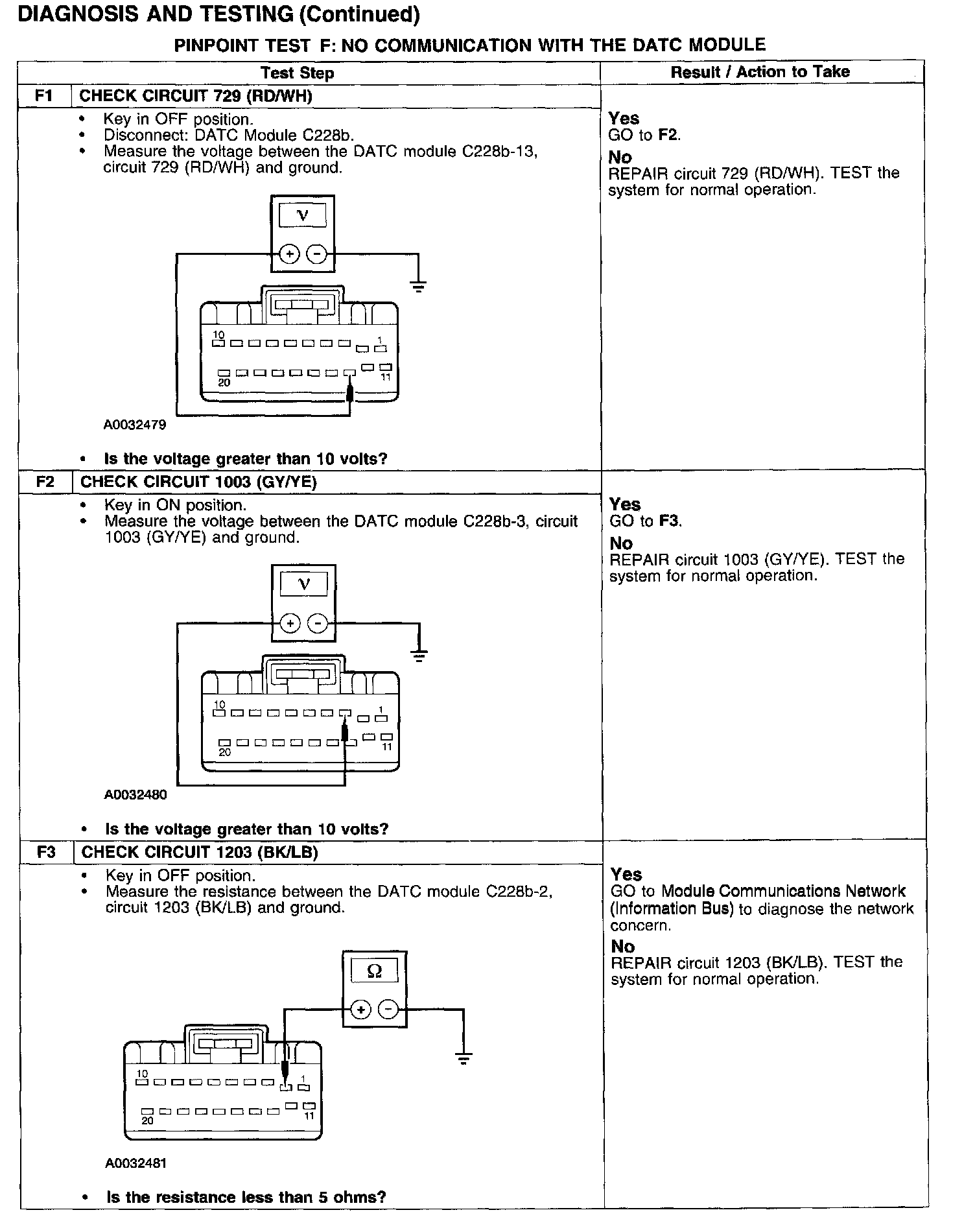 PINPOINT TEST F: NO COMMUNICATION WITH THE DATC MODULE