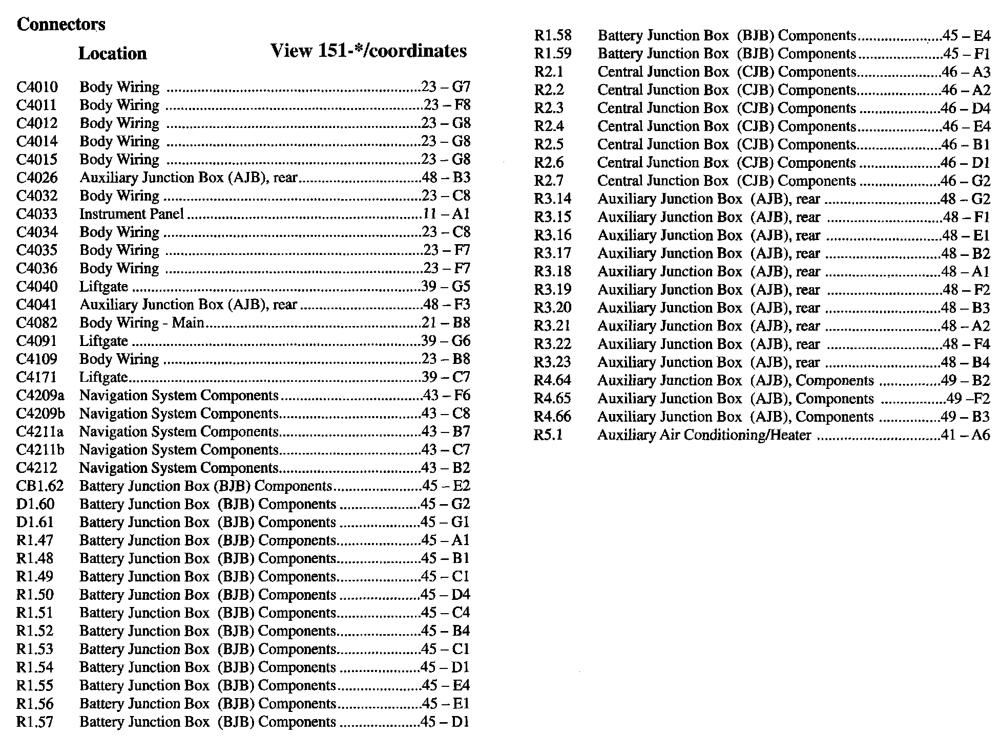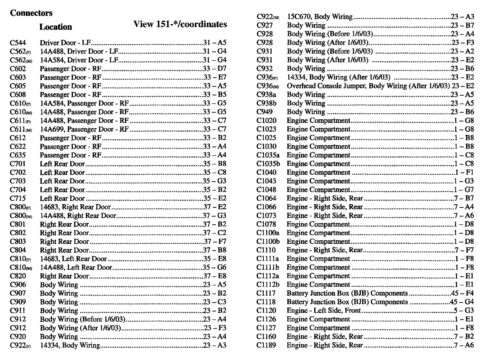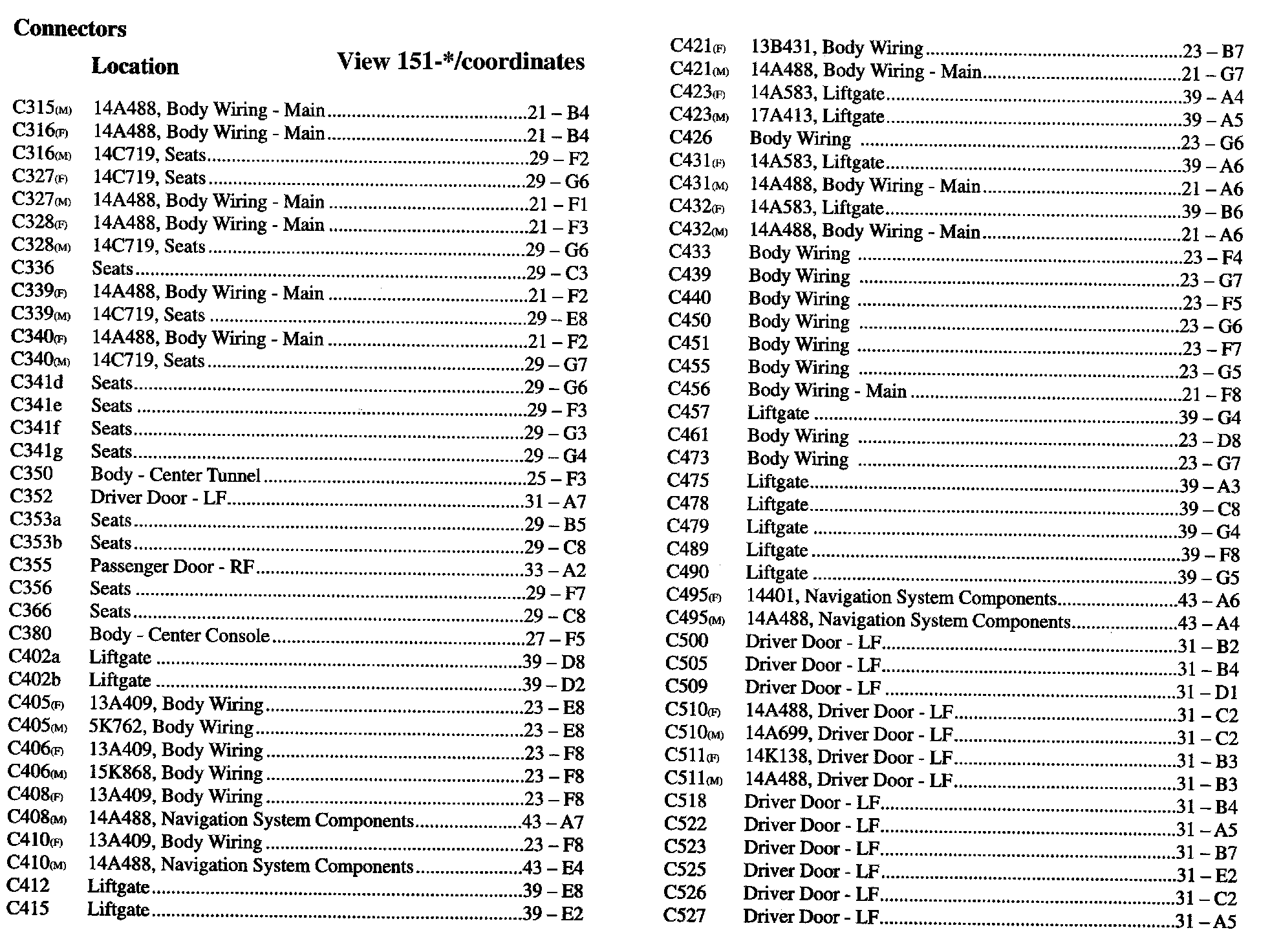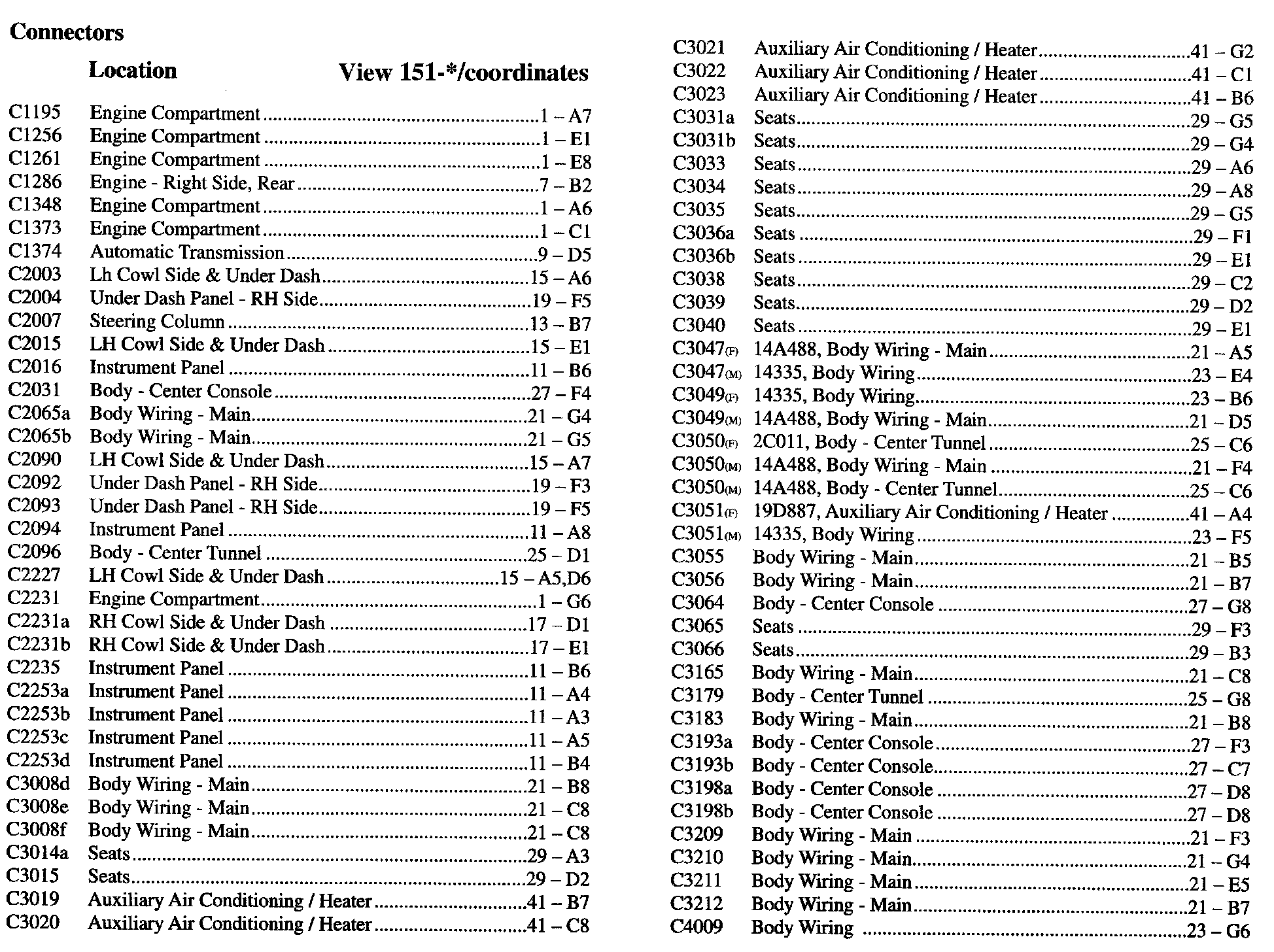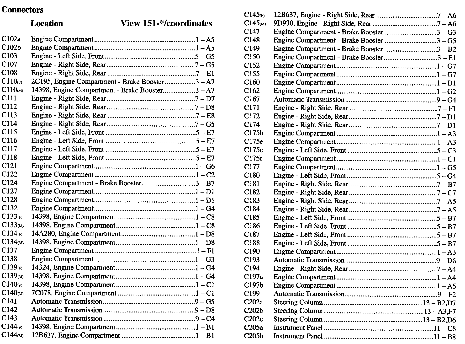 PLEASE NOTE: If a link on the Connector Location Index to a view is not provided, that means that the Connector and/or View in question does NOT apply to the vehicle model selected.