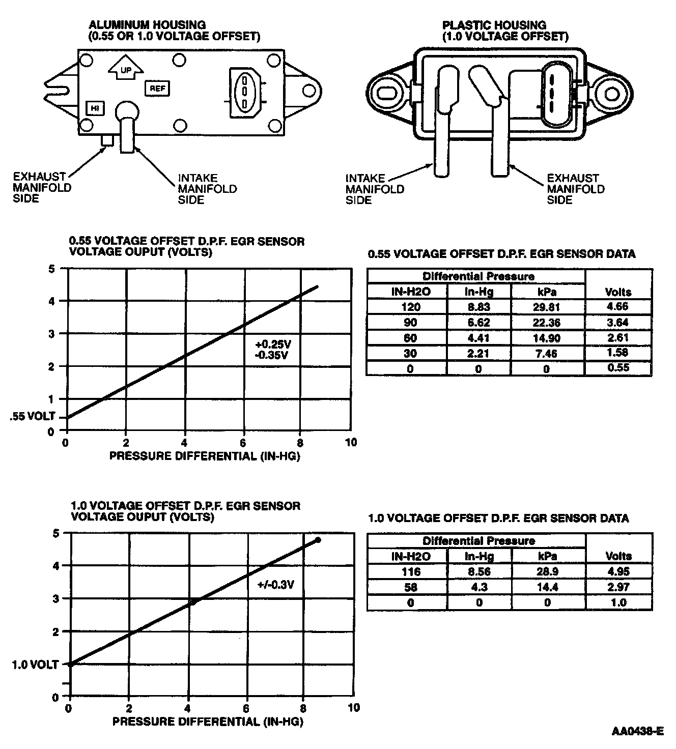 The tube mounted differential pressure feedback EGR sensor (Figure 88) is identical in operation as the larger metal or plastic DPFE sensors and uses a 1.0 volt offset. The HI and REF hose connections are marked on the underside of the sensor.