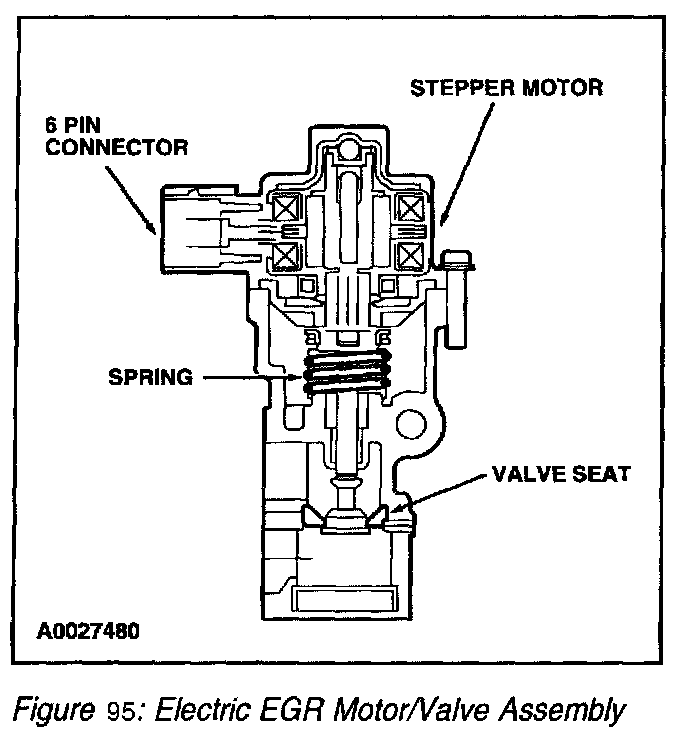 3. The PCM in turn will output signals to the EEGR motor to move (advance or retract) a calibrated number of discrete steps. The electric stepper motor will directly actuate the EEGR valve, independent of engine vacuum. The EEGR valve is commanded from 0 to 52 discrete steps to get the EGR valve from a fully closed to fully open position. The position of the EGR valve determines the EGR flow.